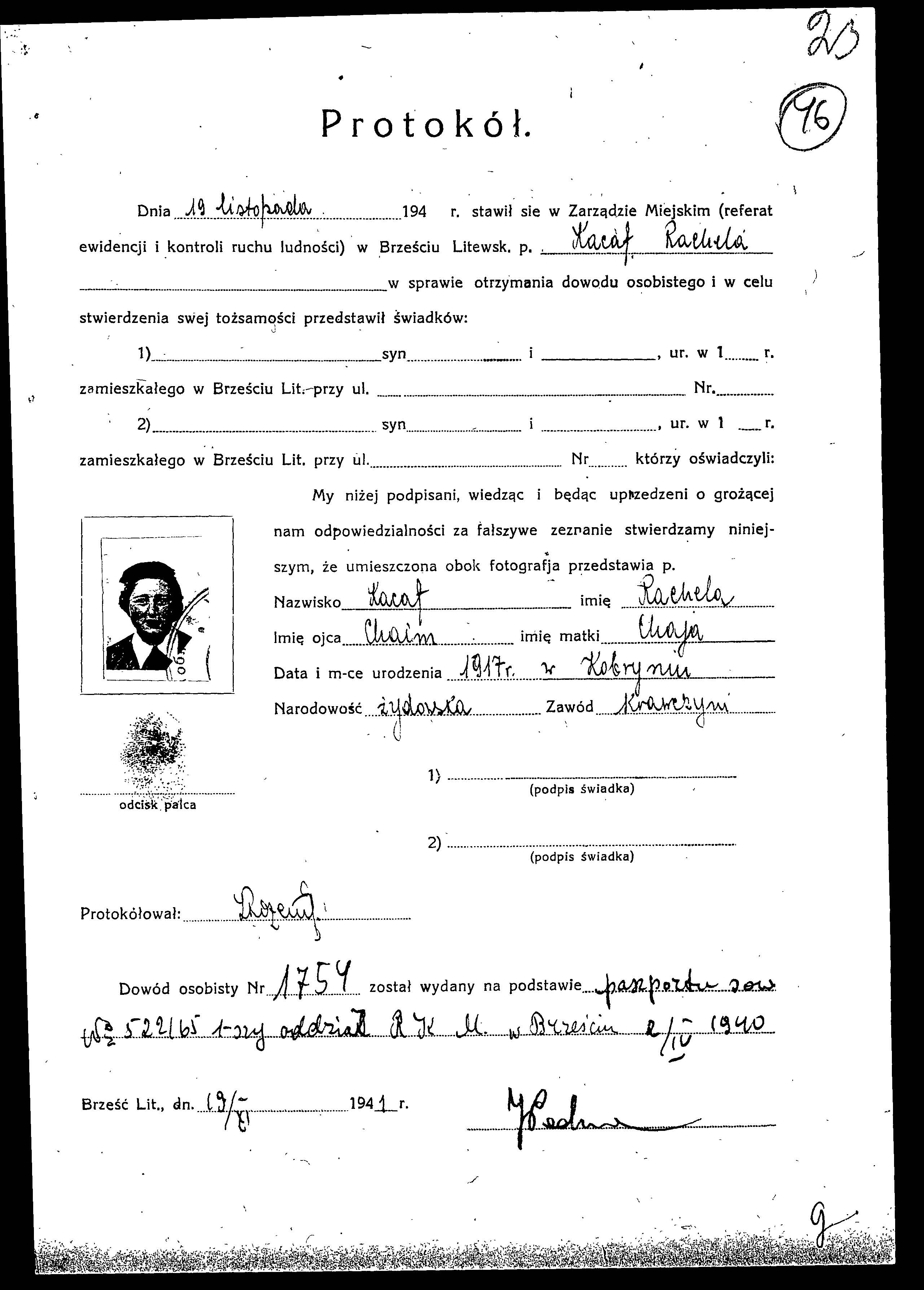 Forms containing personal details completed by Jews in the Brest Litovsk Ghetto in order to receive identity cards, 1941-1942; the letter K