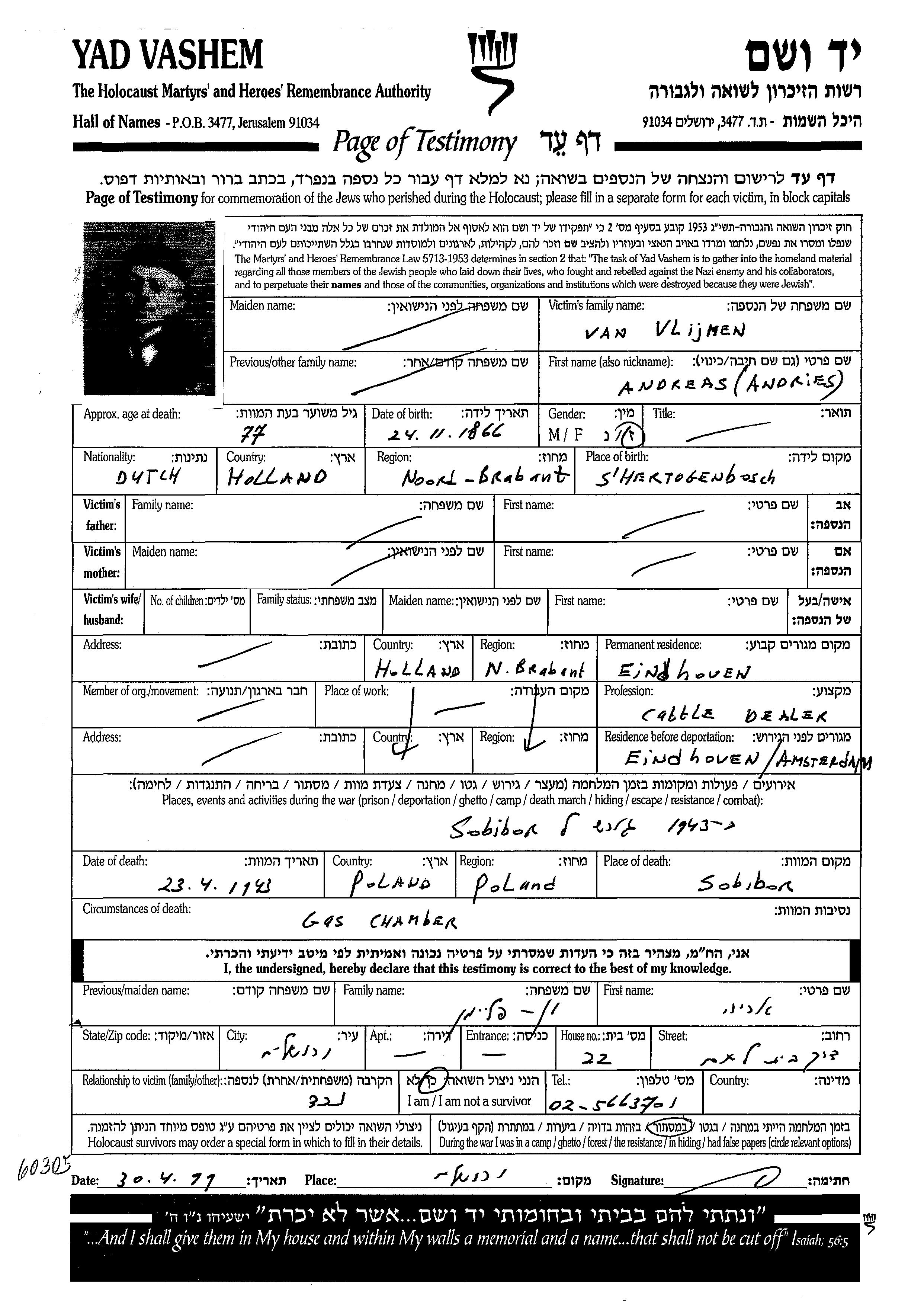 Search by last name of the submitter of the Page of Testimony, including diminutives or nicknames