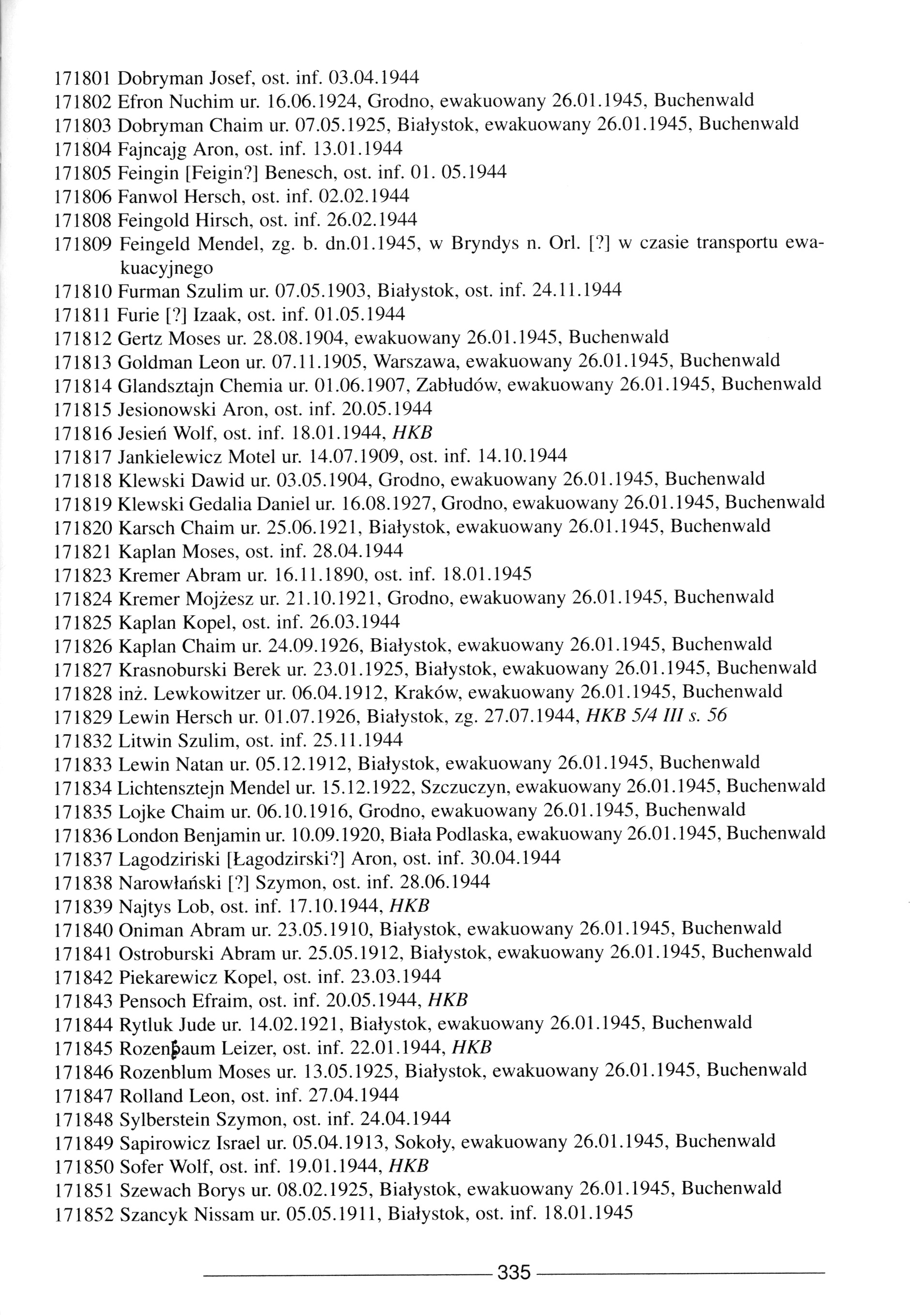 | Sapirowicz | Israel | 1913 | Bialystok, Poland | List of persecuted persons |