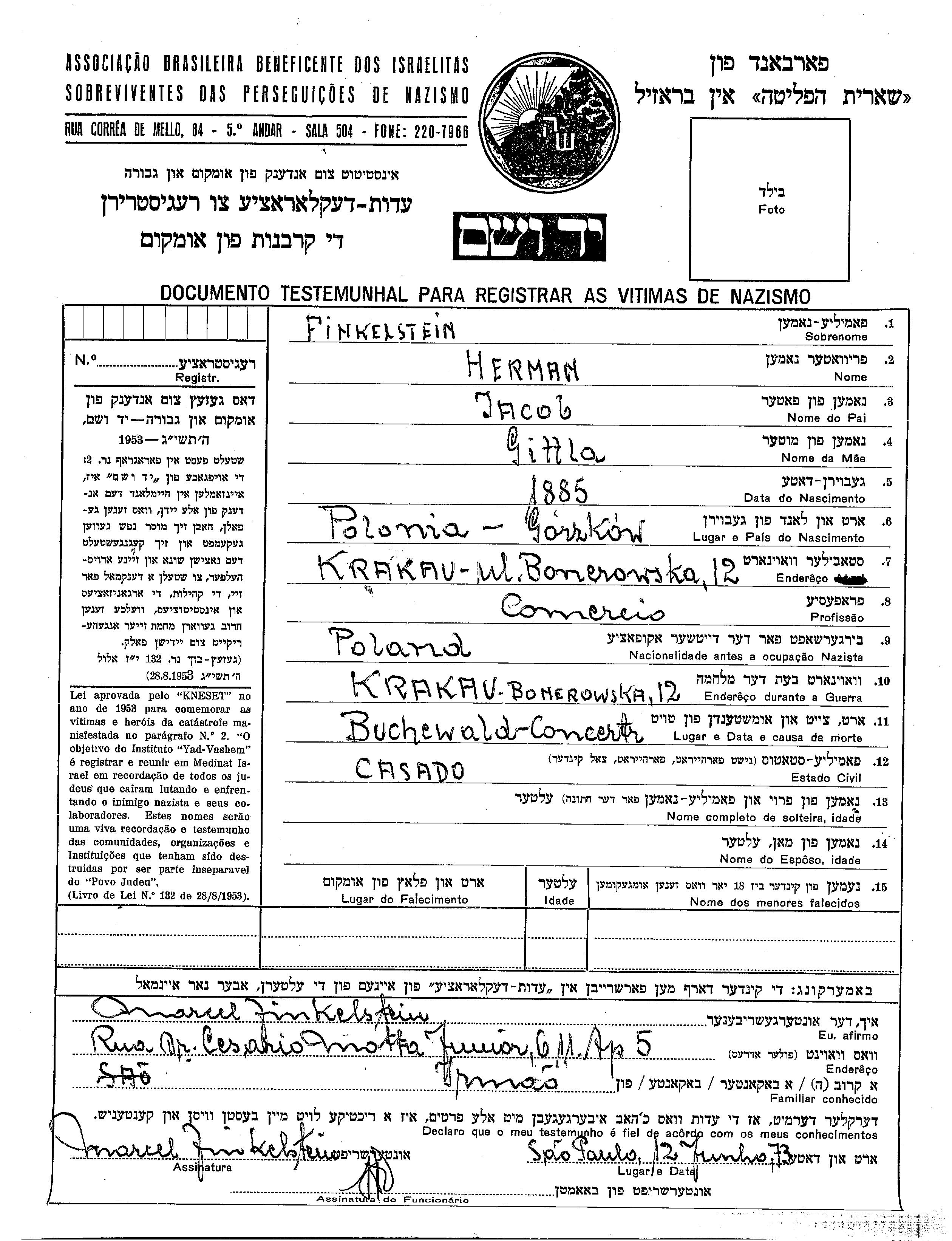 | Finkelstein | Herman | 1885 | Krakow, Poland | Page of Testimony |