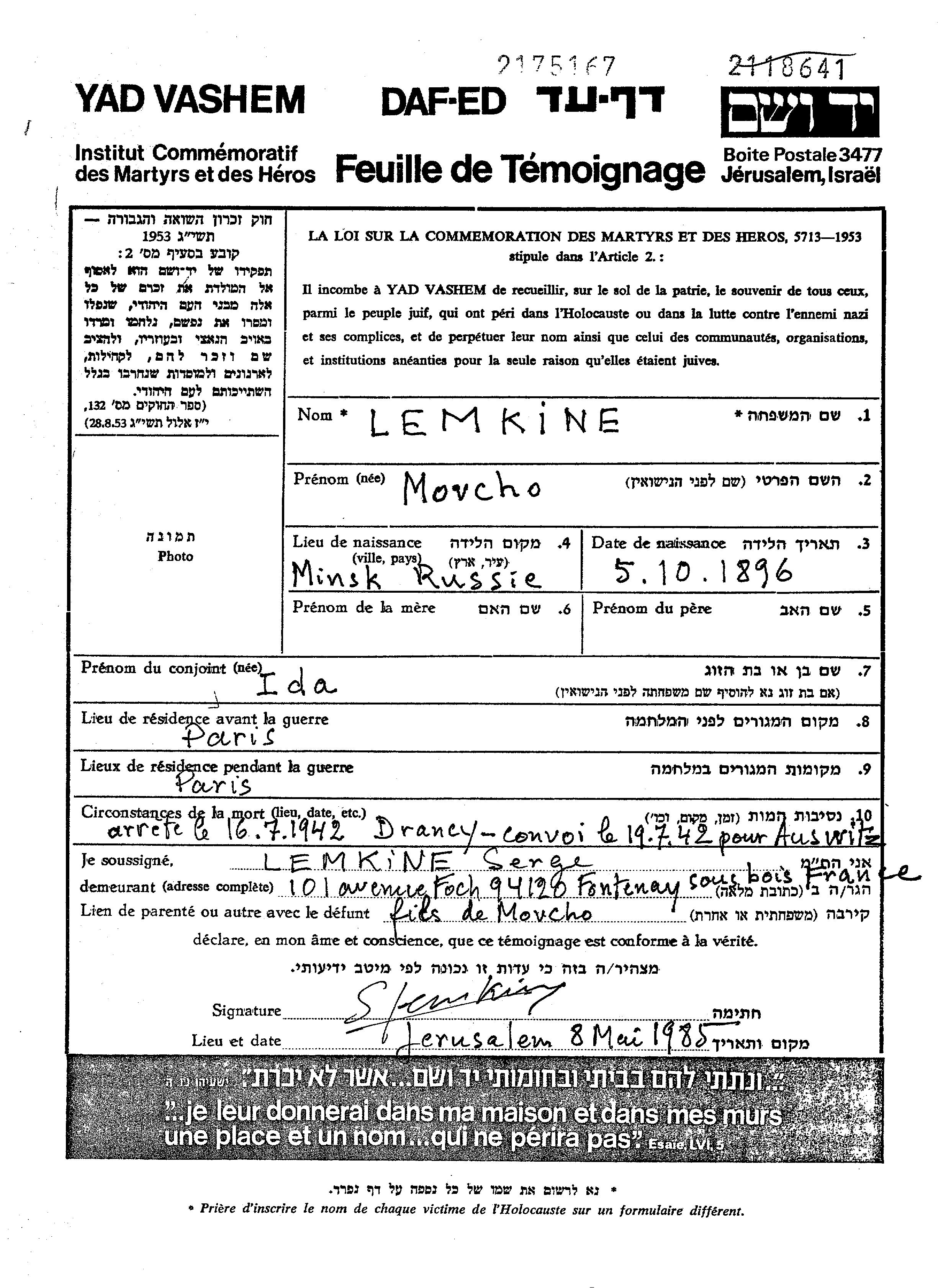 Search by last name of the submitter of the Page of Testimony, including diminutives or nicknames