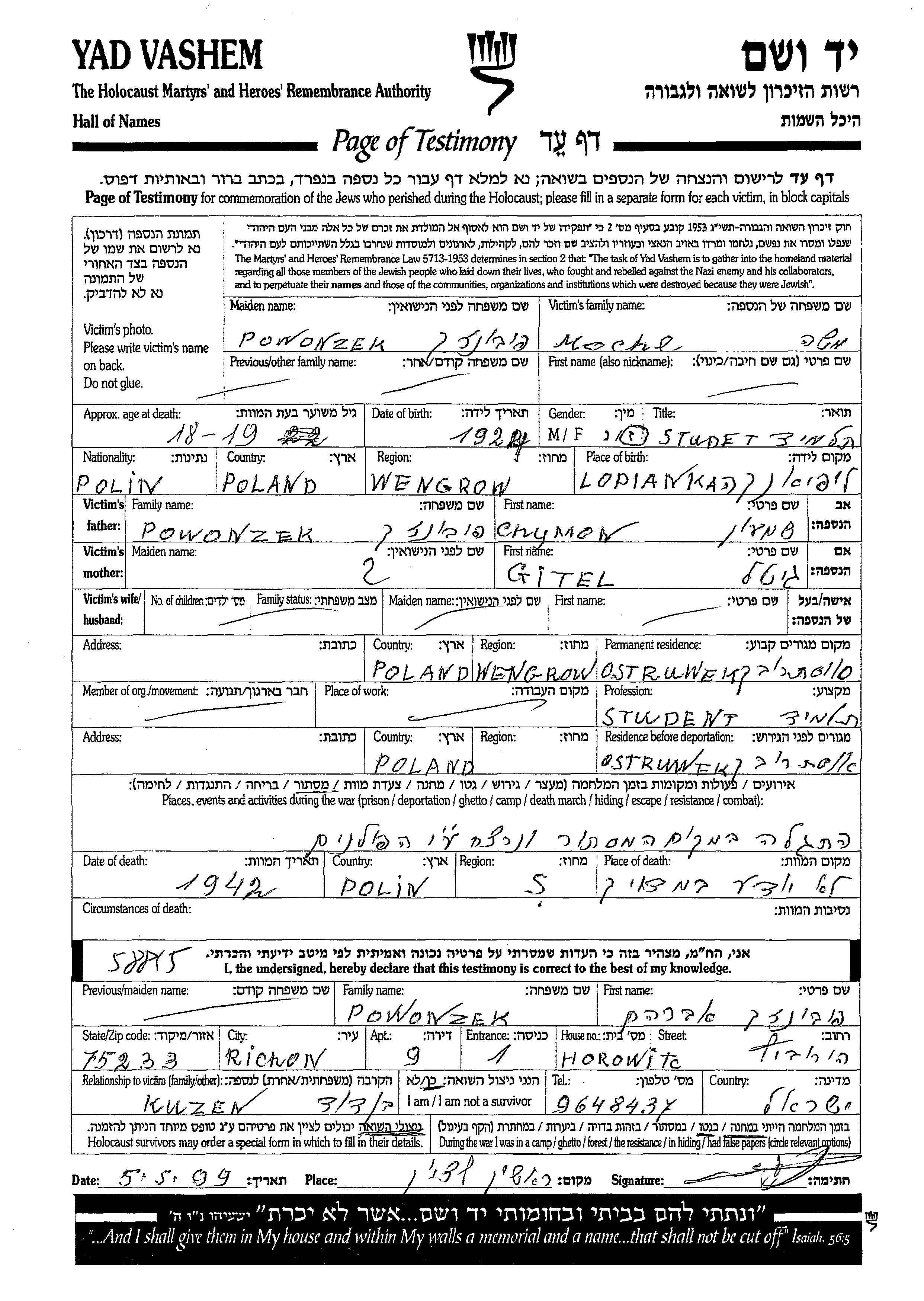 Search by last name of the submitter of the Page of Testimony, including diminutives or nicknames