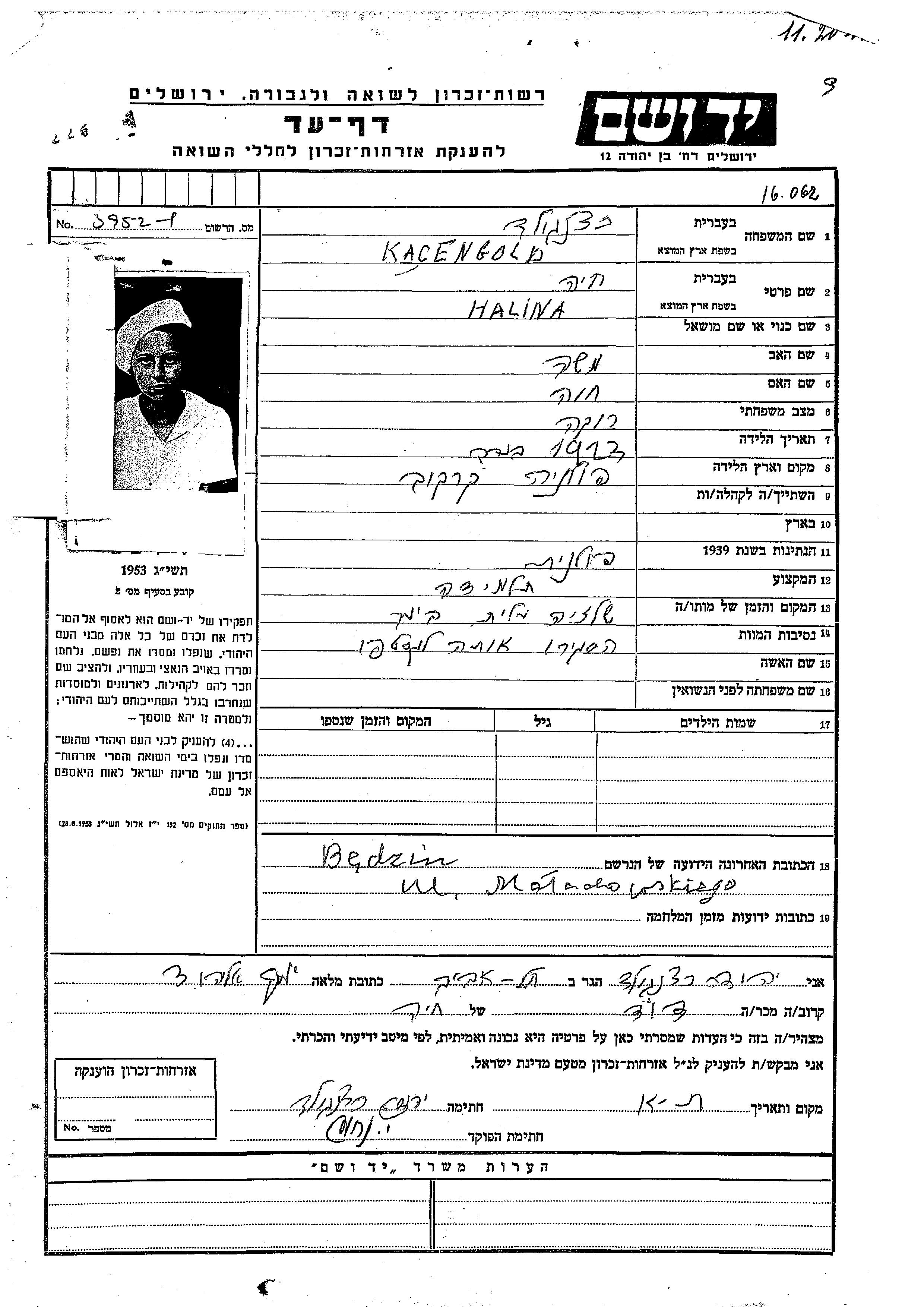 Kacengold Halina Khaia 1923 Będzin, Poland Photos