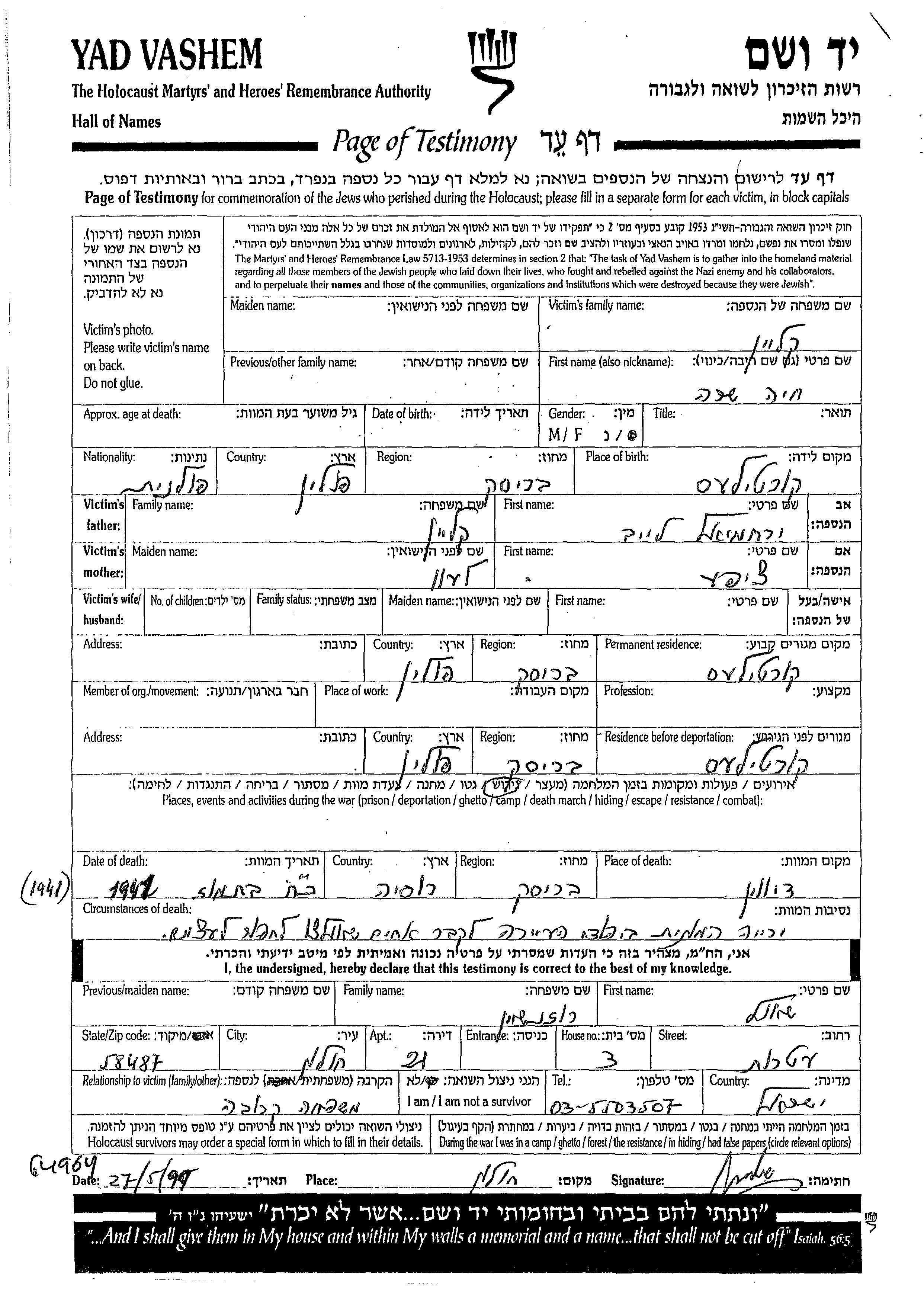 Yad Vashem - Pages of Testimony Names Memorial Collection