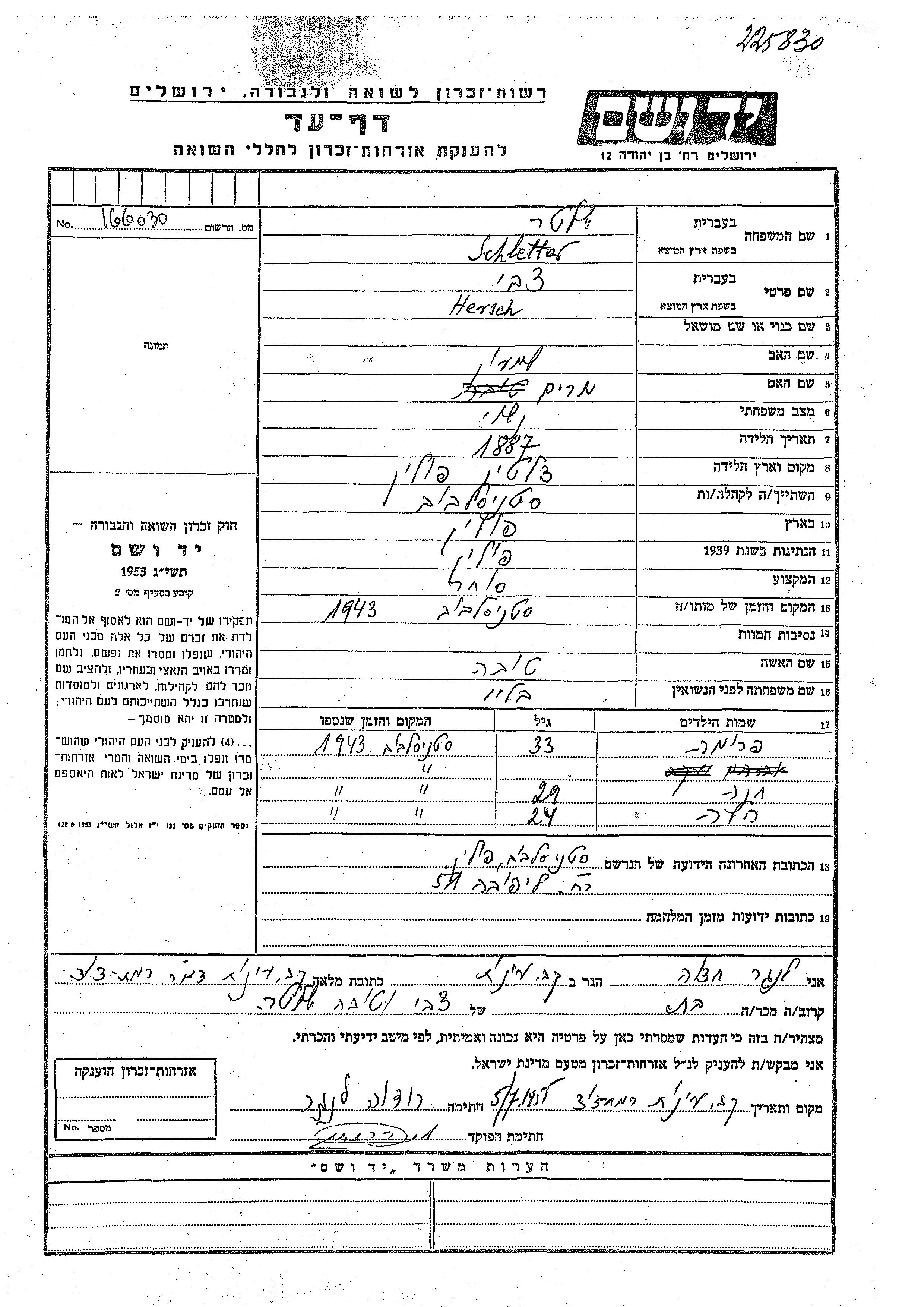 Schletter Hela Stanislawow, Poland Page of Testimony