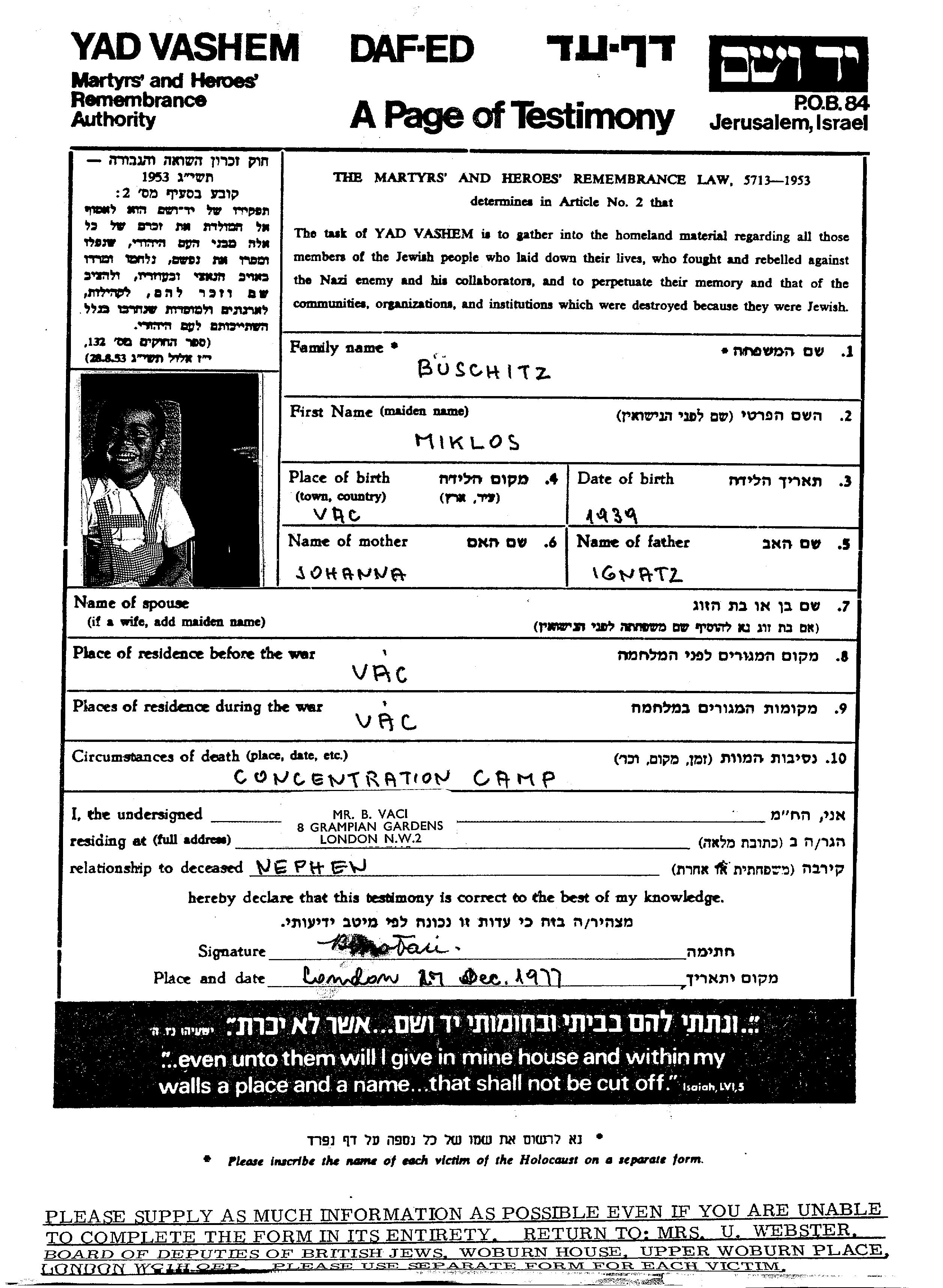 Search by last name of the submitter of the Page of Testimony, including diminutives or nicknames
