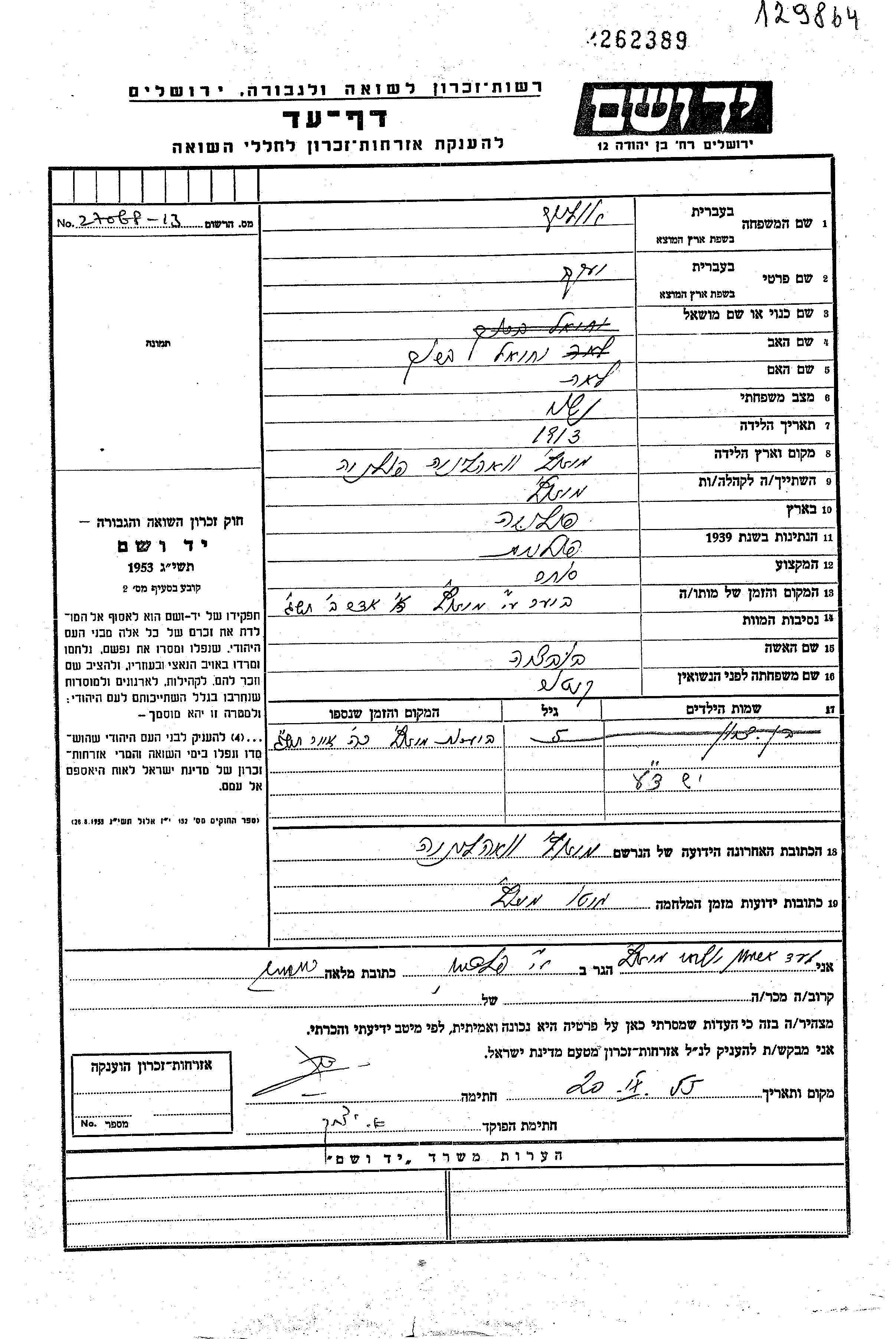 Yad Vashem - Pages of Testimony Names Memorial Collection