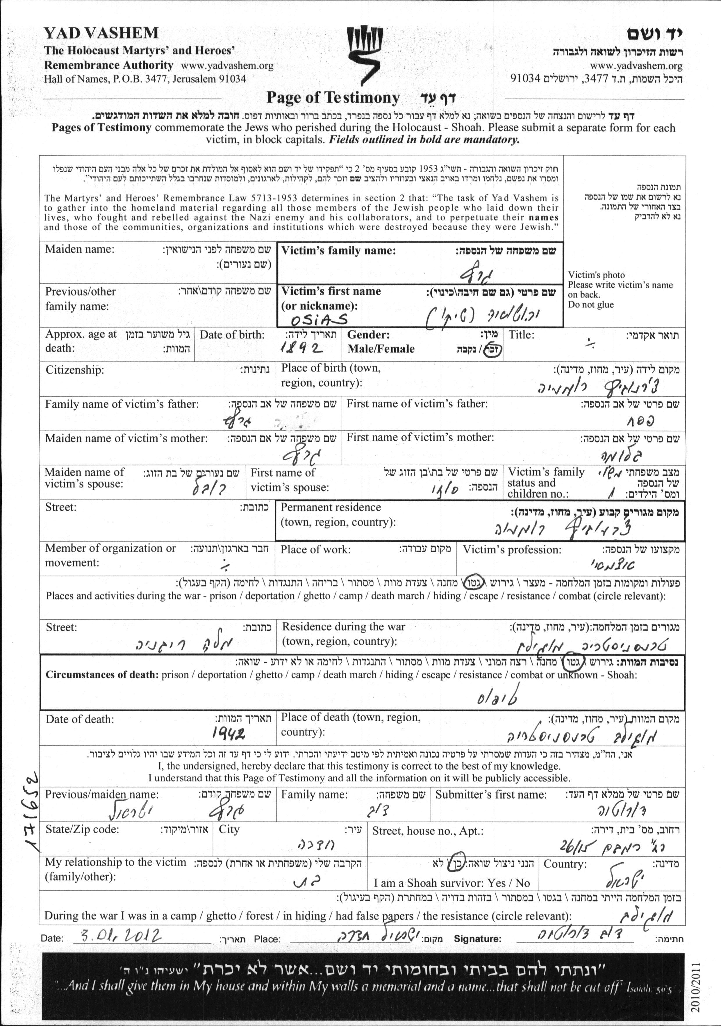 During the Shoah, Jews were murdered in a variety of ways, among them gassing, shooting, burning, drowning or burial alive, exhaustion through forced labor, starvation, epidemic diseases, deprivation of medical care and minimal hygienic conditions, and more. Some Jews took their own lives in order to escape arrest and further persecution, or to end their hopeless, relentless suffering. Tens of thousands of Jewish soldiers serving in the Soviet army and captured as POWs were selected as Jews and murdered. Many were registered as “missing in action”.