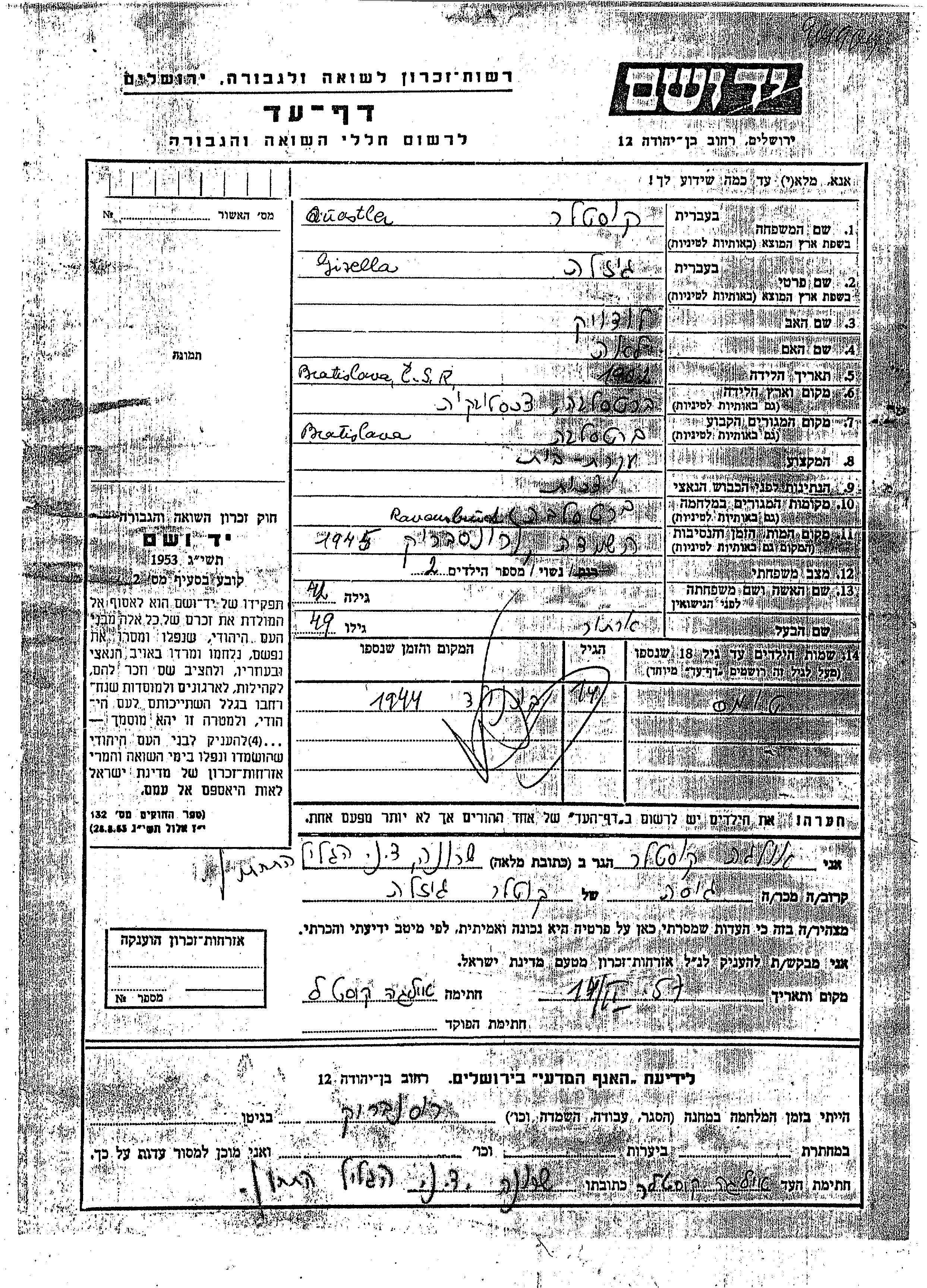 Yad Vashem - Pages of Testimony Names Memorial Collection