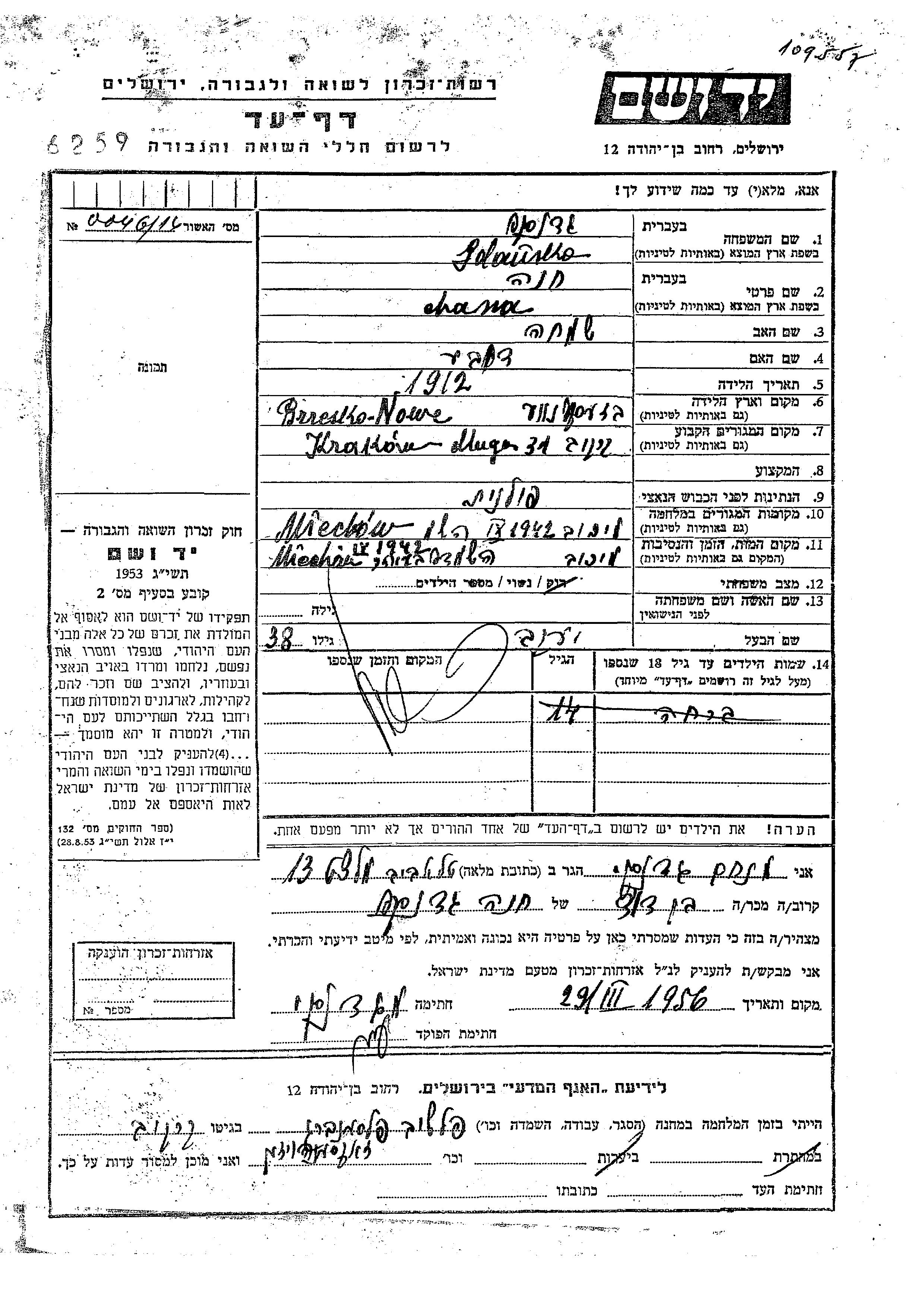 Rakhel Khana Gdansky was born in Brzesko Nowe, Poland. She was a housewife. Prior to WWII she lived in Krakow, Poland. Rakhel Khana was murdered in the Shoah. Place of death: Miechów, Poland, 04/1942.