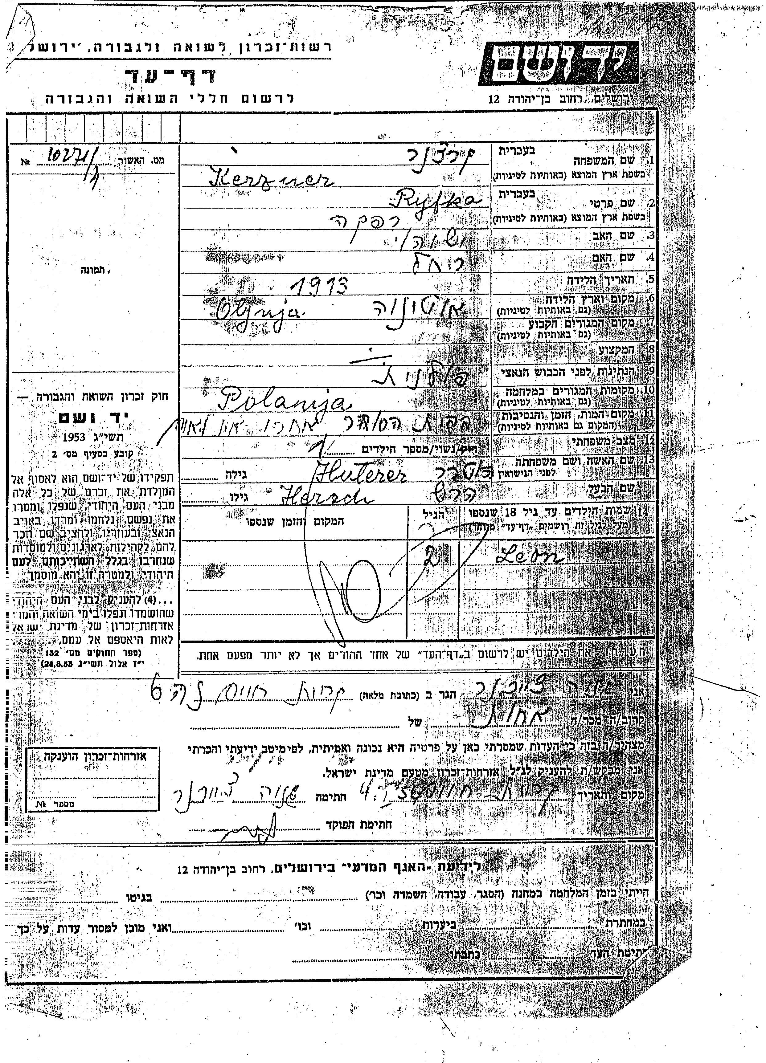Kerzner Kretzner | Rywka | 1911 | Ottynia, Poland | Page of Testimony |