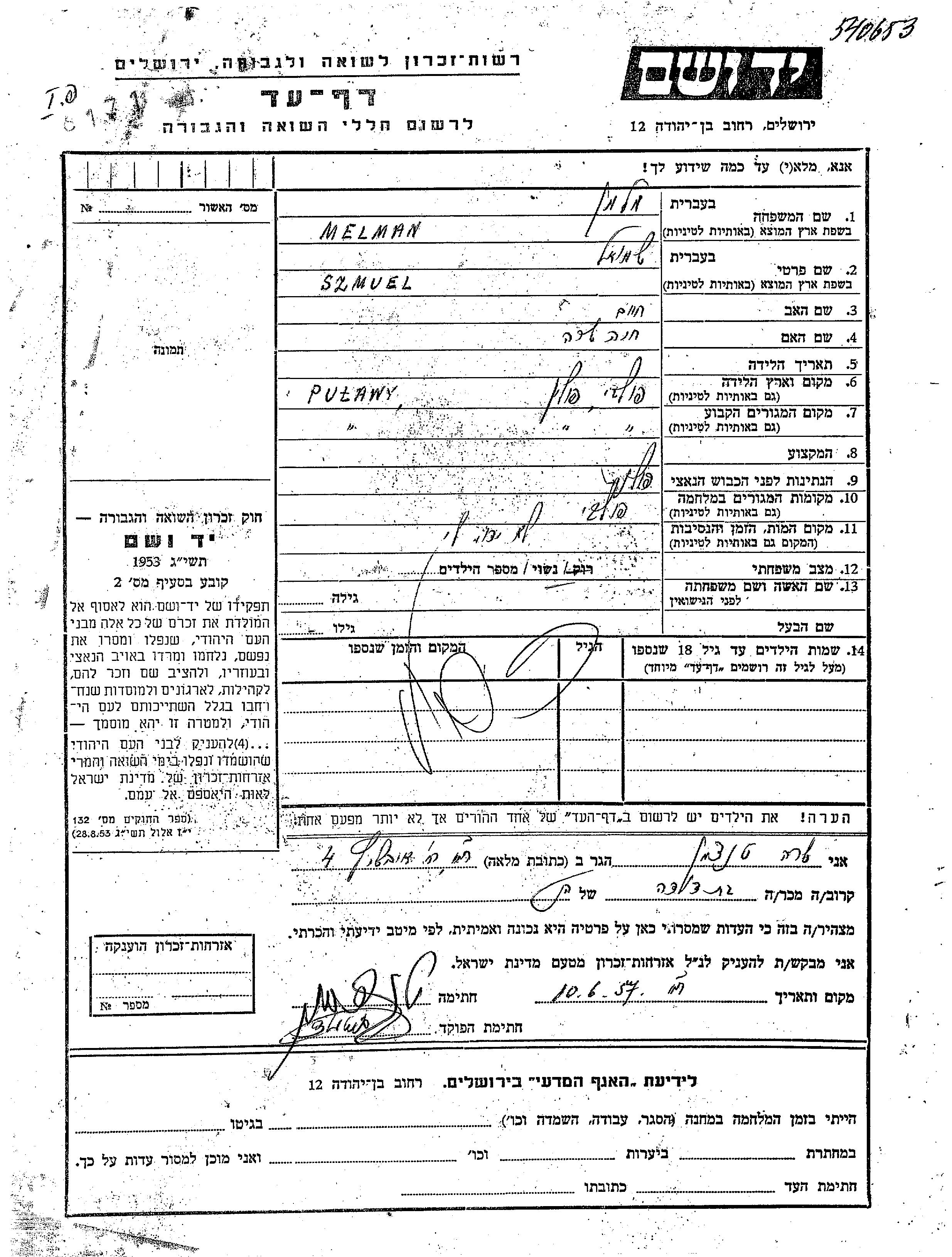 Melman Szmuel Pulawy, Poland Page of Testimony