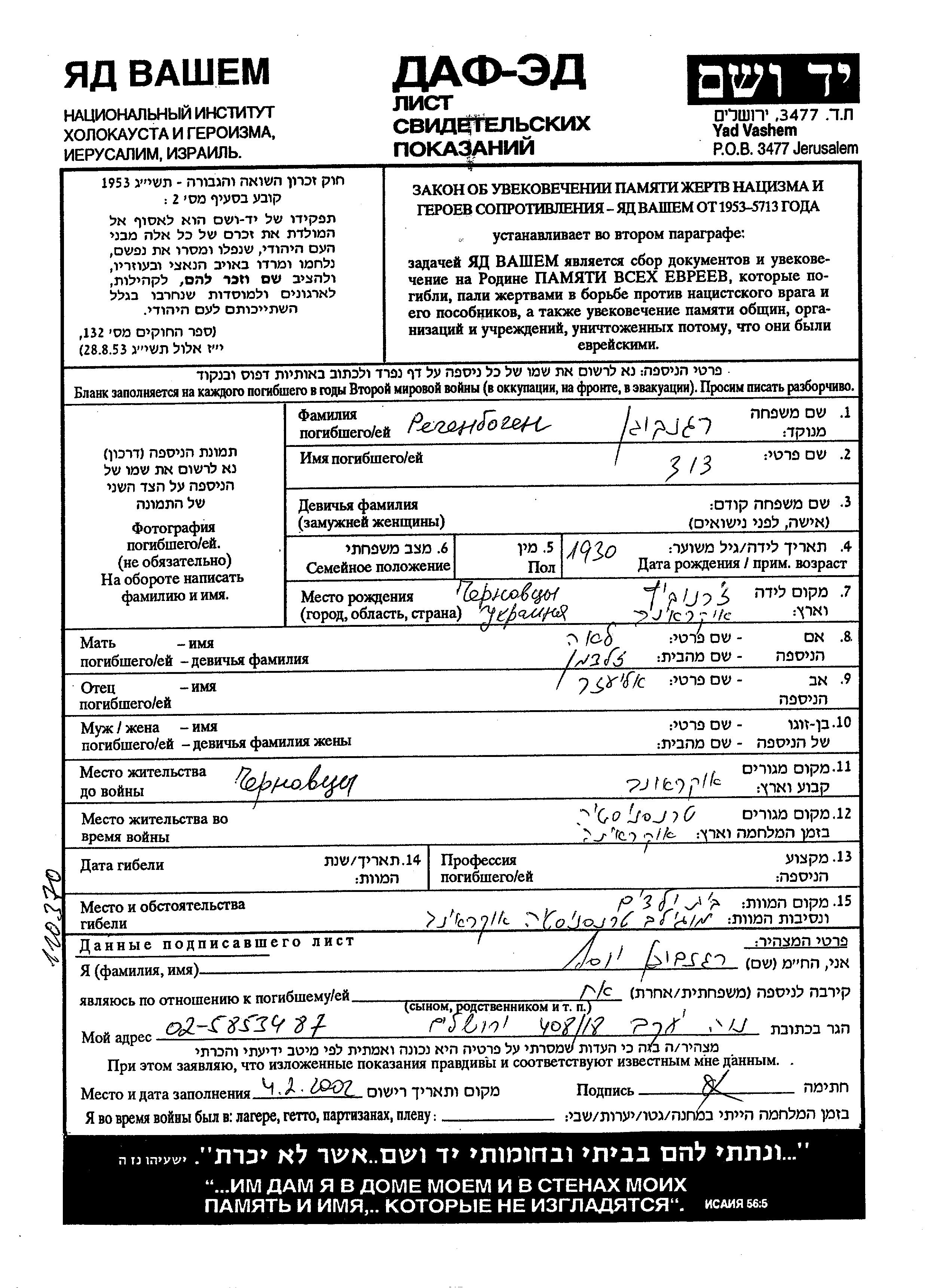 Yad Vashem - Pages of Testimony Names Memorial Collection