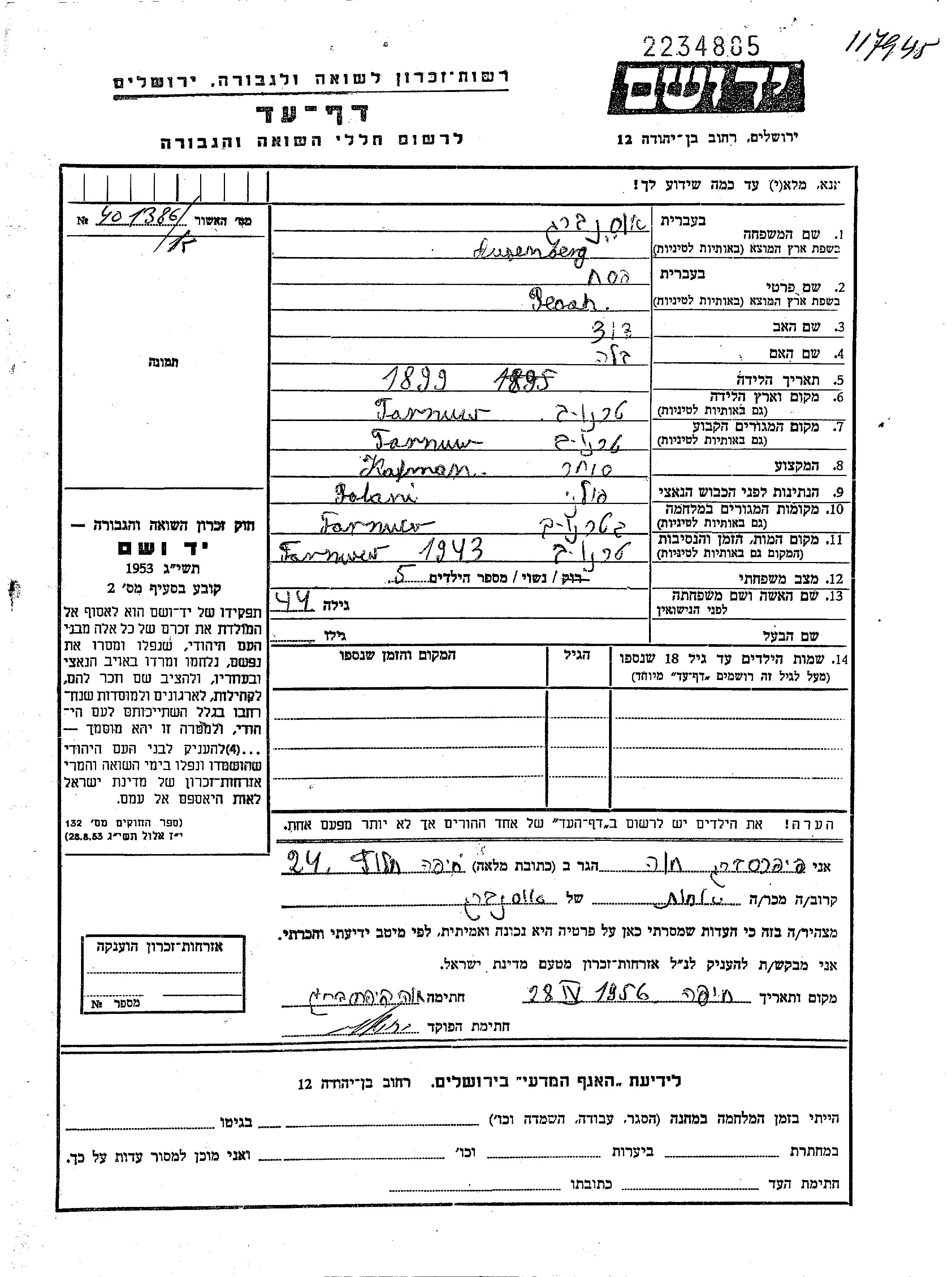 Faige Ruchl Auslender was born in Kaminczyk, Poland, 1894. She was a housewife and married to Avram Baruch. Prior to WWII she lived in Kaminczyk, Poland. During the war she was in Kaminczyk, Poland. Faige Ruchl was murdered in the Shoah. Place of death: Auschwitz, Poland, 1942.