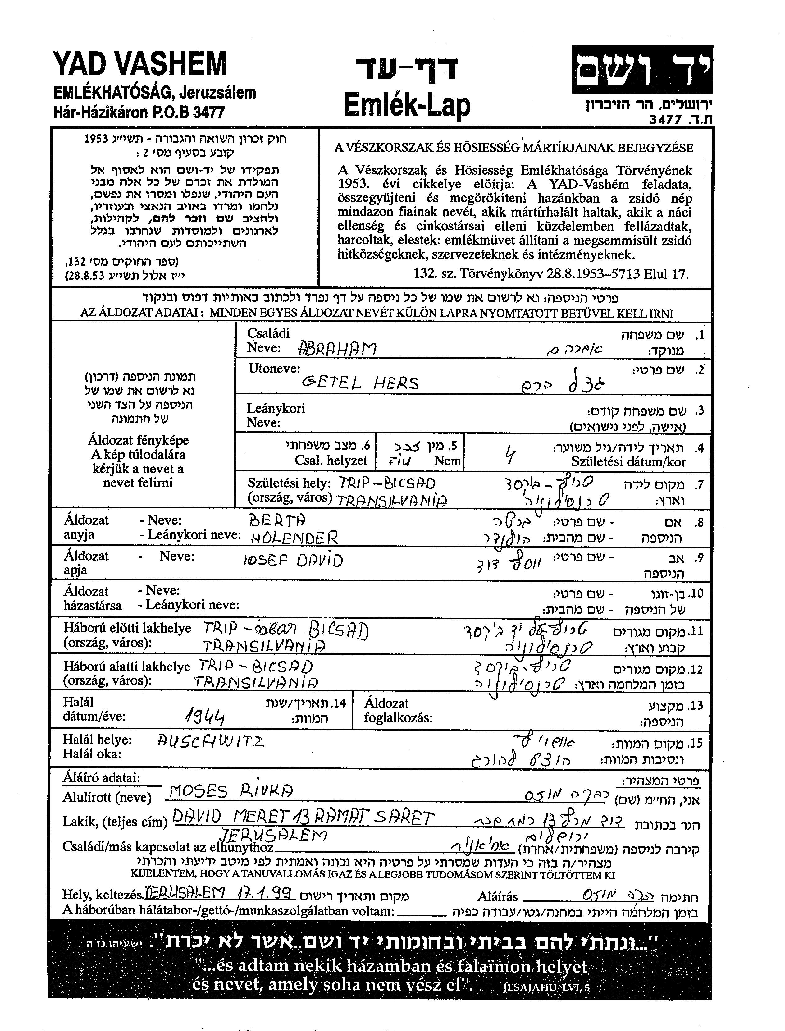 Yad Vashem - Pages of Testimony Names Memorial Collection