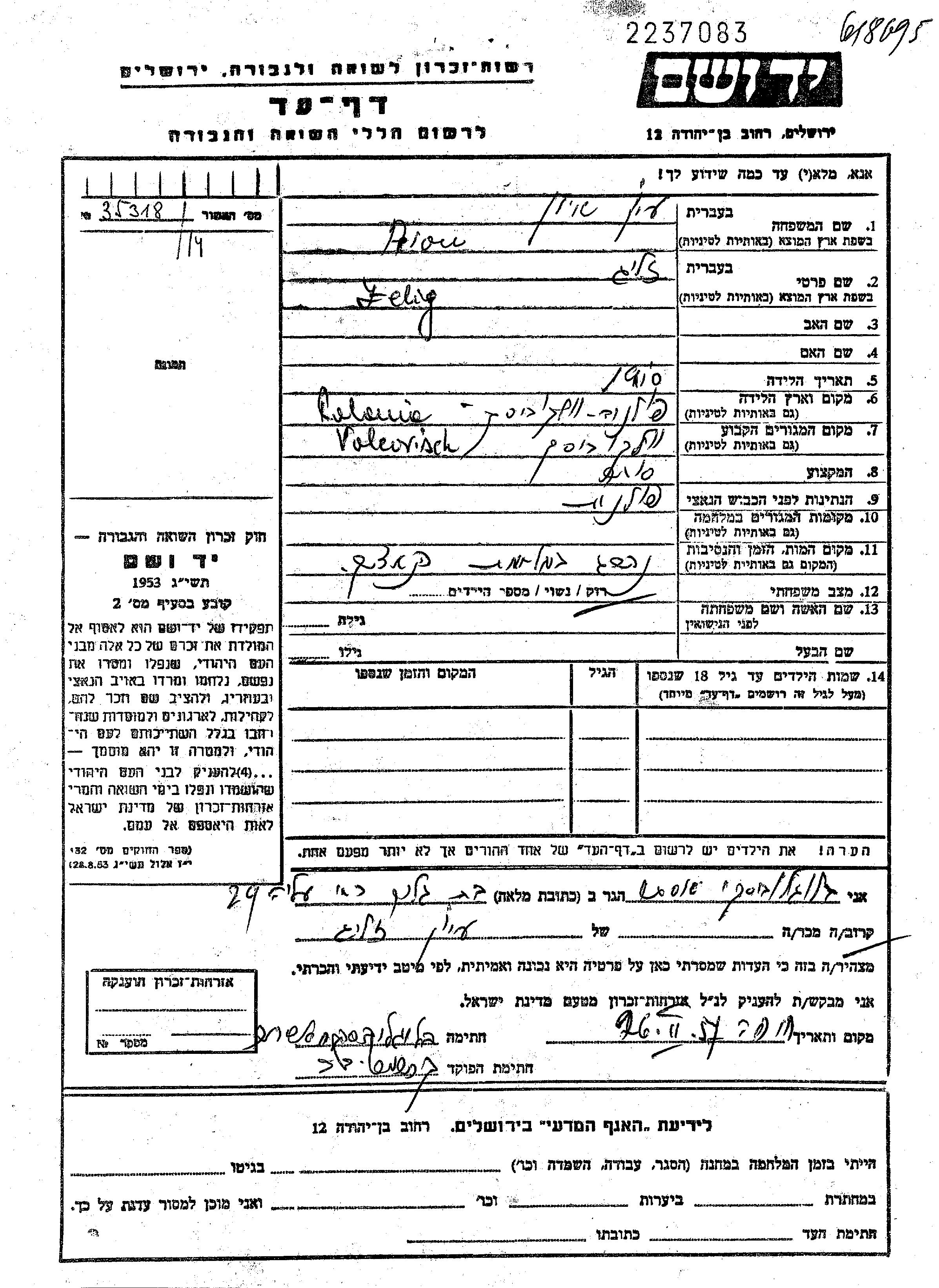 Yad Vashem - Pages of Testimony Names Memorial Collection