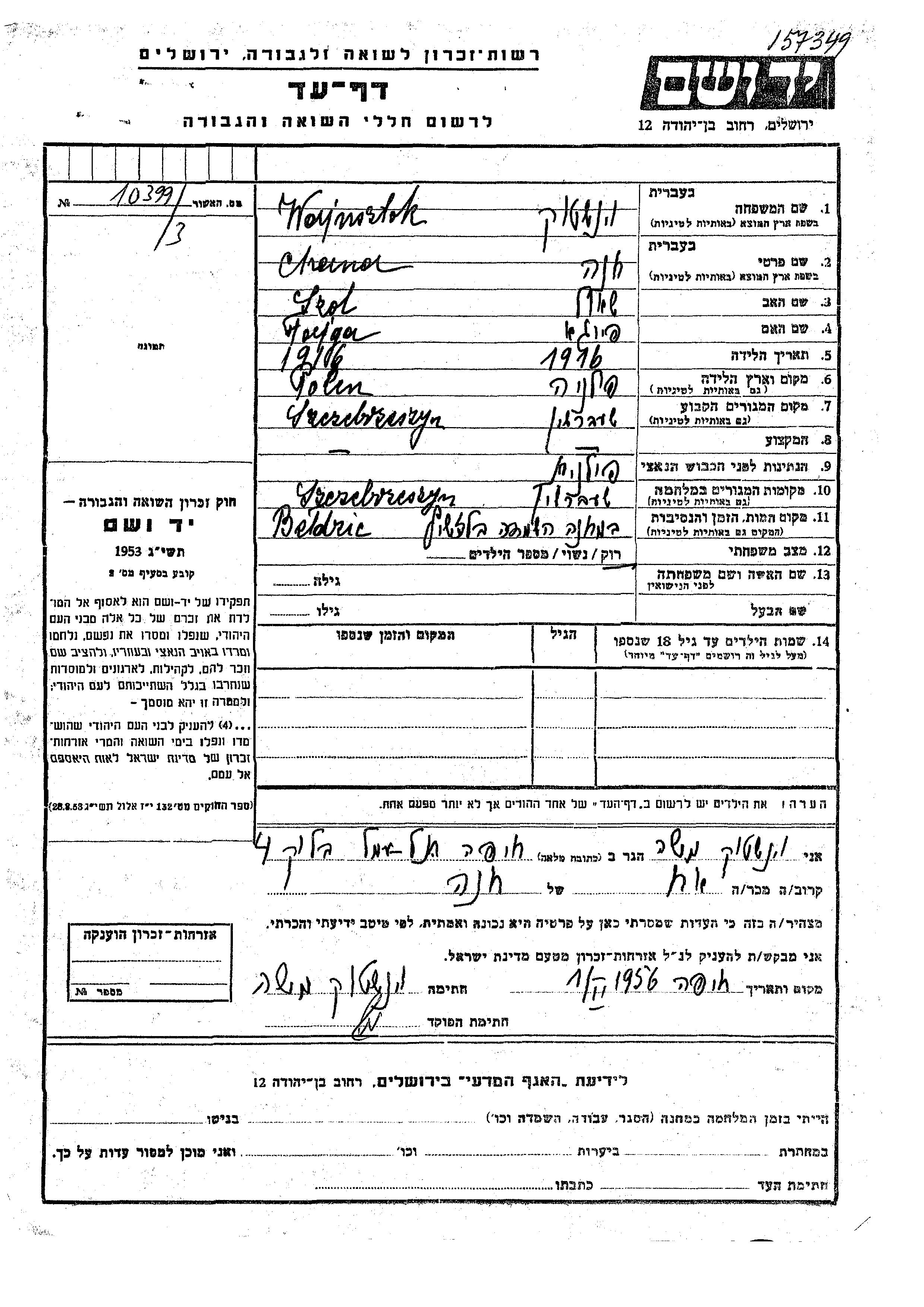 Yad Vashem - Pages of Testimony Names Memorial Collection
