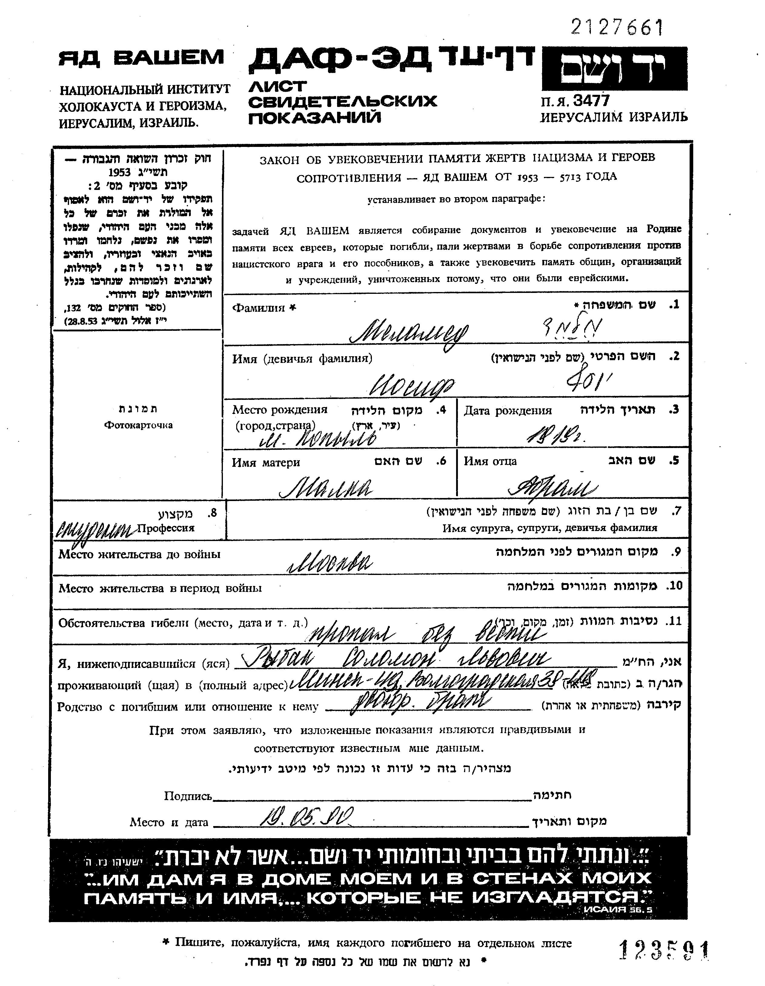 Melamed | Iosif | 1919 | Moskva, Russia (USSR) | Page of Testimony |
