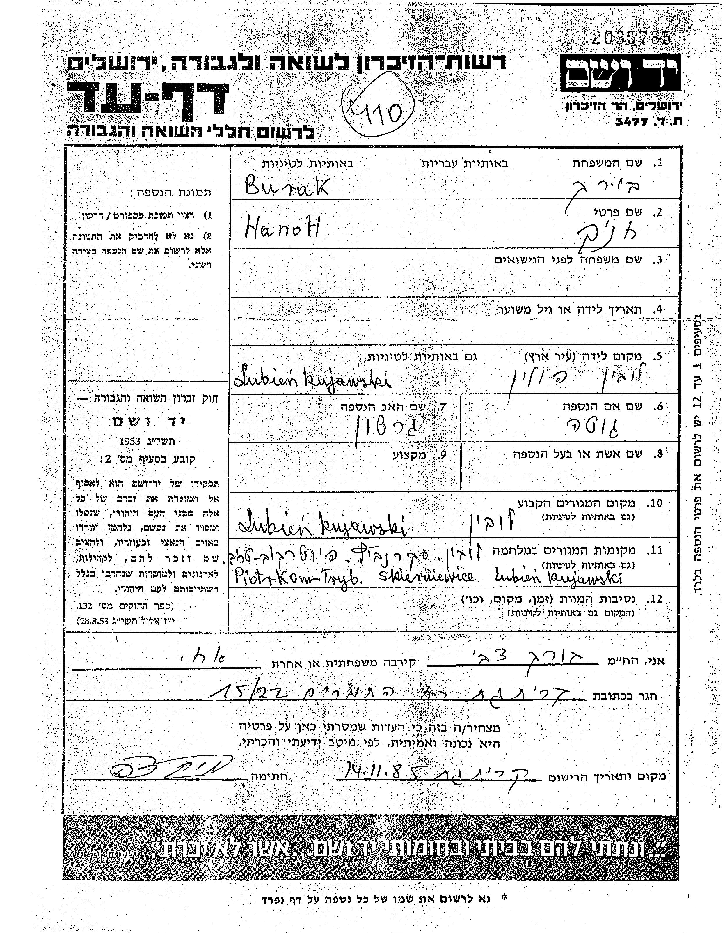 Search by last name of the submitter of the Page of Testimony, including diminutives or nicknames