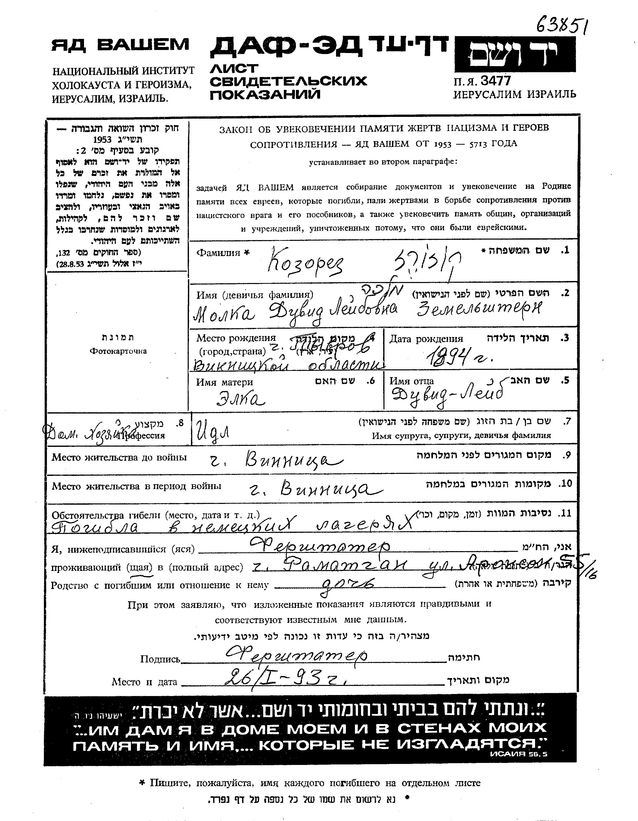 Yad Vashem - Pages of Testimony Names Memorial Collection