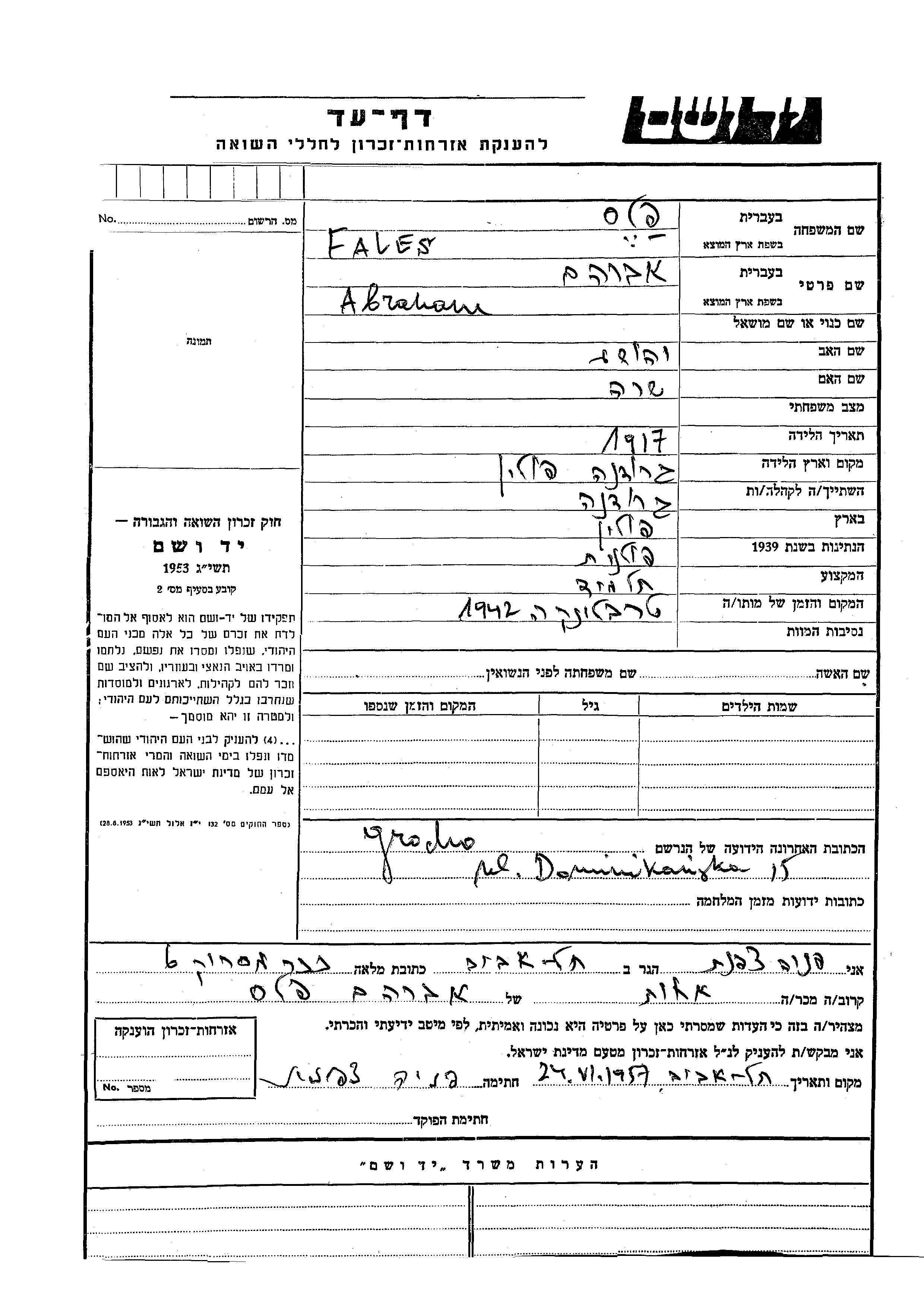 Search by name of Prewar permanent residence, Town, Village, District, Region or Country.