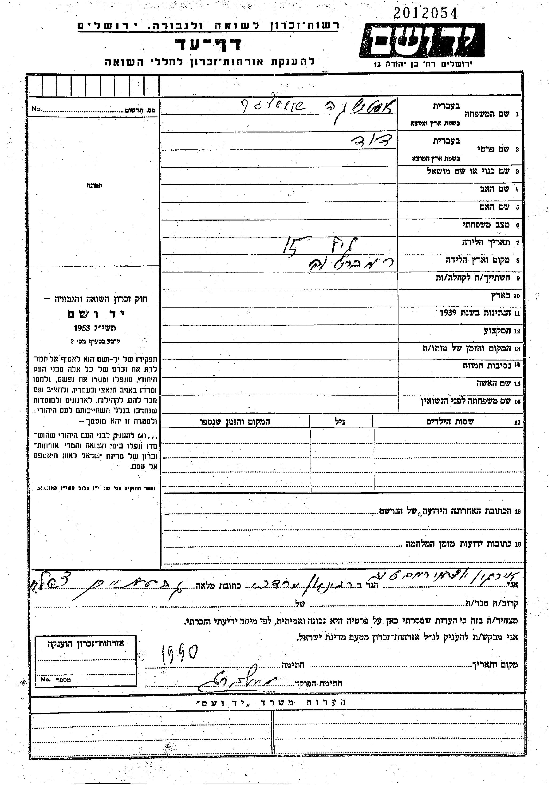 Yad Vashem - Pages of Testimony Names Memorial Collection