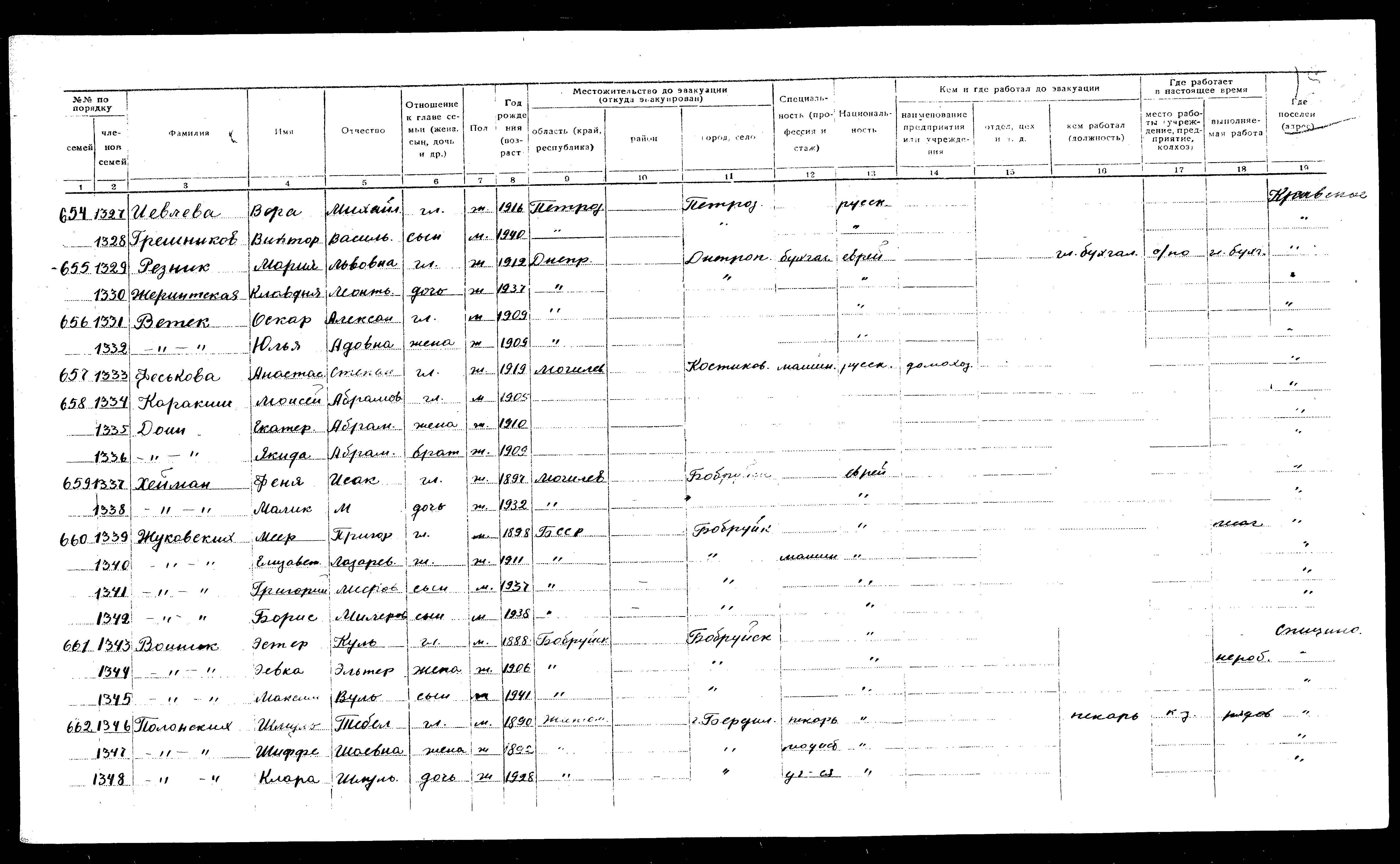 Zhukovski Boris 1936 Bobruysk, Belorussia (USSR) List of evacuated persons