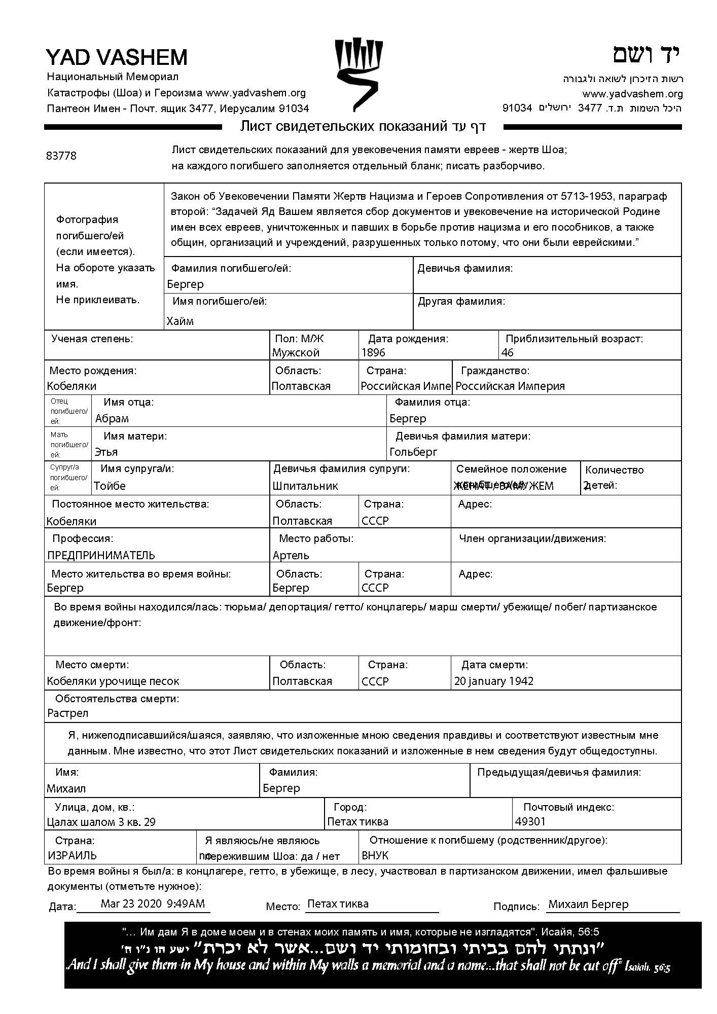 Search by last name of the submitter of the Page of Testimony, including diminutives or nicknames
