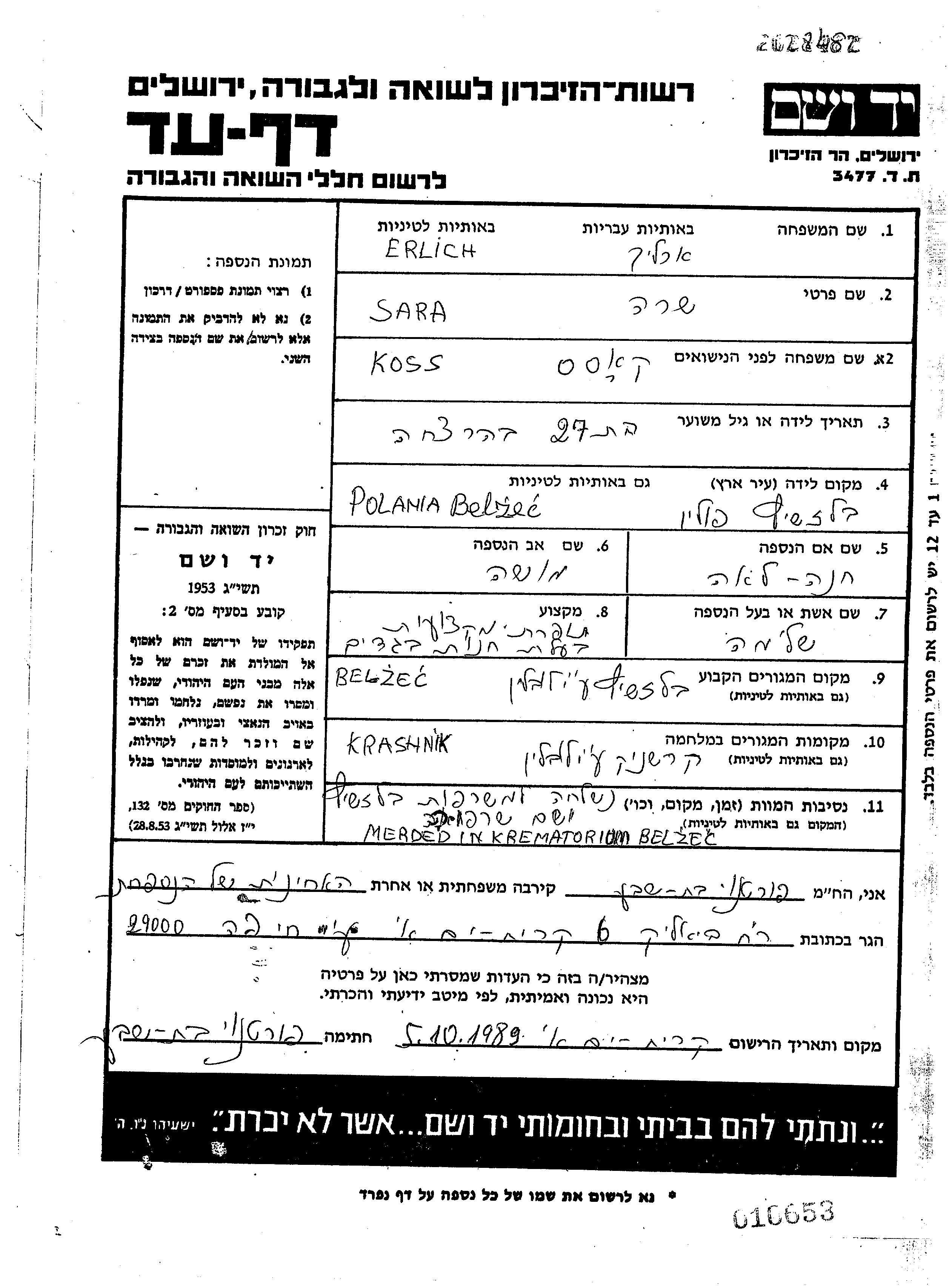 Yad Vashem - Pages of Testimony Names Memorial Collection