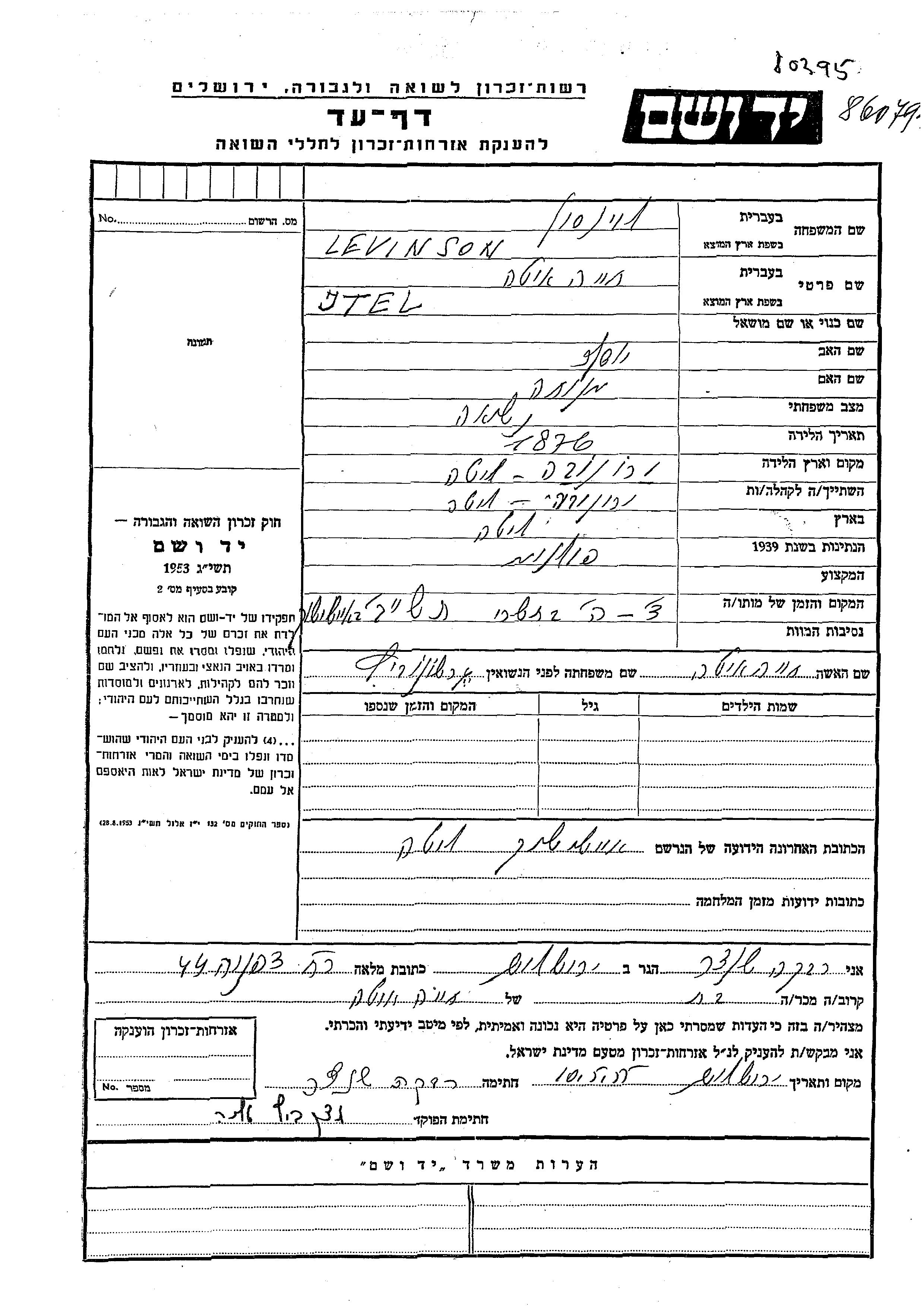 Khaia Itel Levinson nee Gershonovitz was born in Werenow, Poland, 1876. She was a merchant. Prior to WWII she lived in Lida, Poland. Khaia Itel was murdered in the Shoah. Place of death: Ejszyszki, Poland, 25/09/1941.