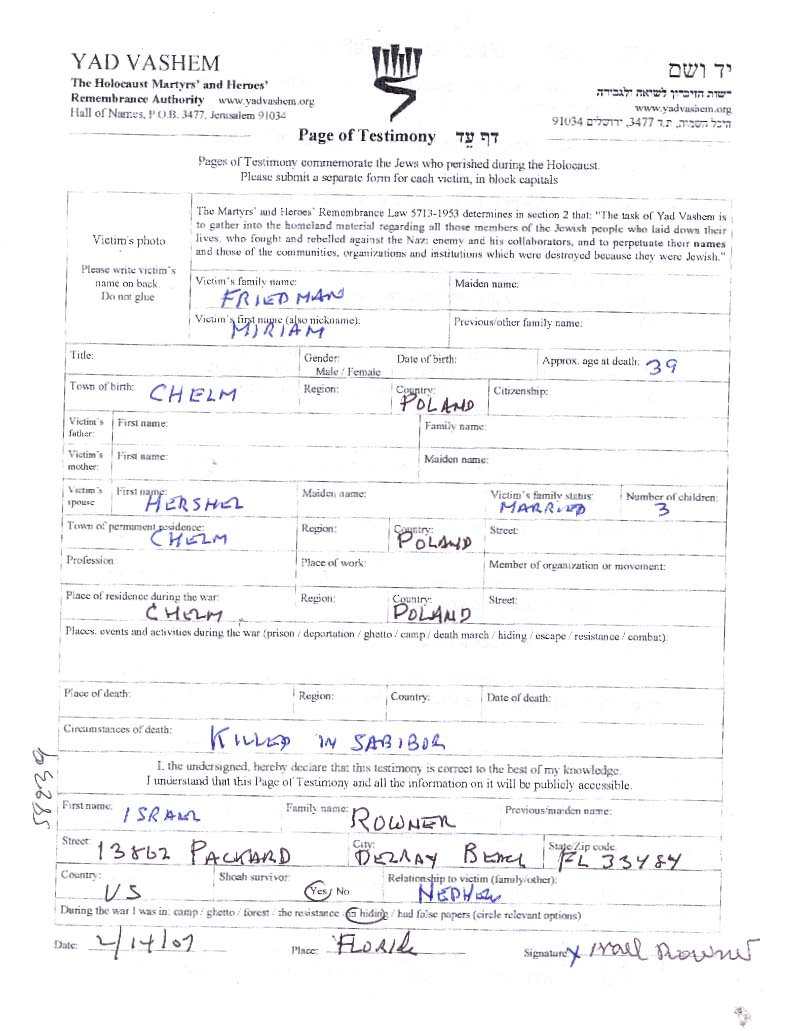 Yad Vashem - Pages of Testimony Names Memorial Collection