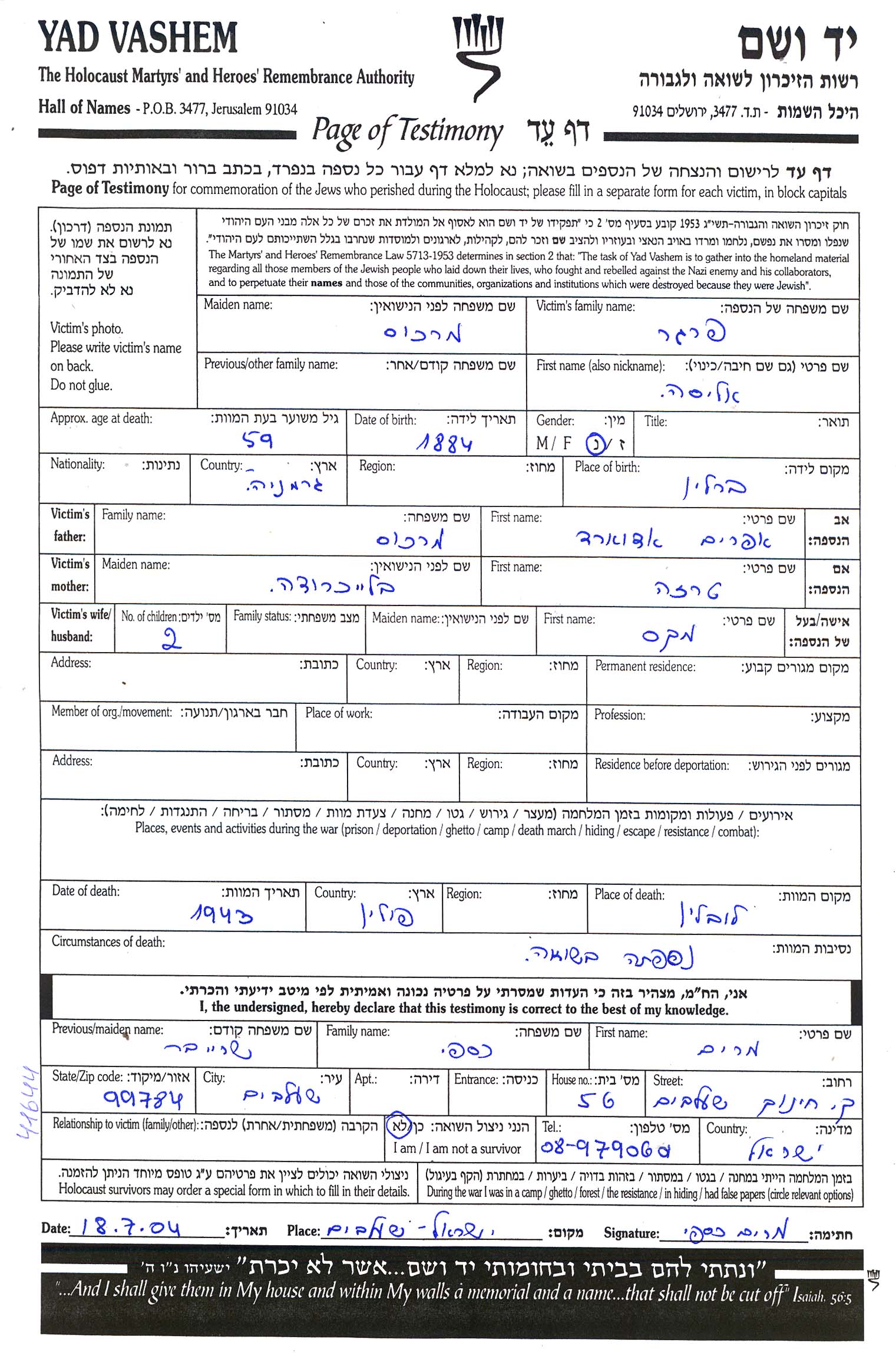 Yad Vashem - Pages of Testimony Names Memorial Collection