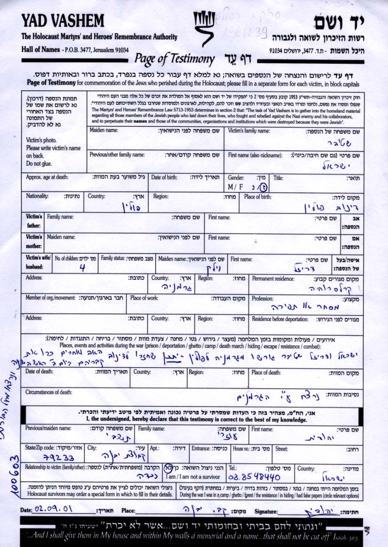 Yad Vashem - Pages of Testimony Names Memorial Collection