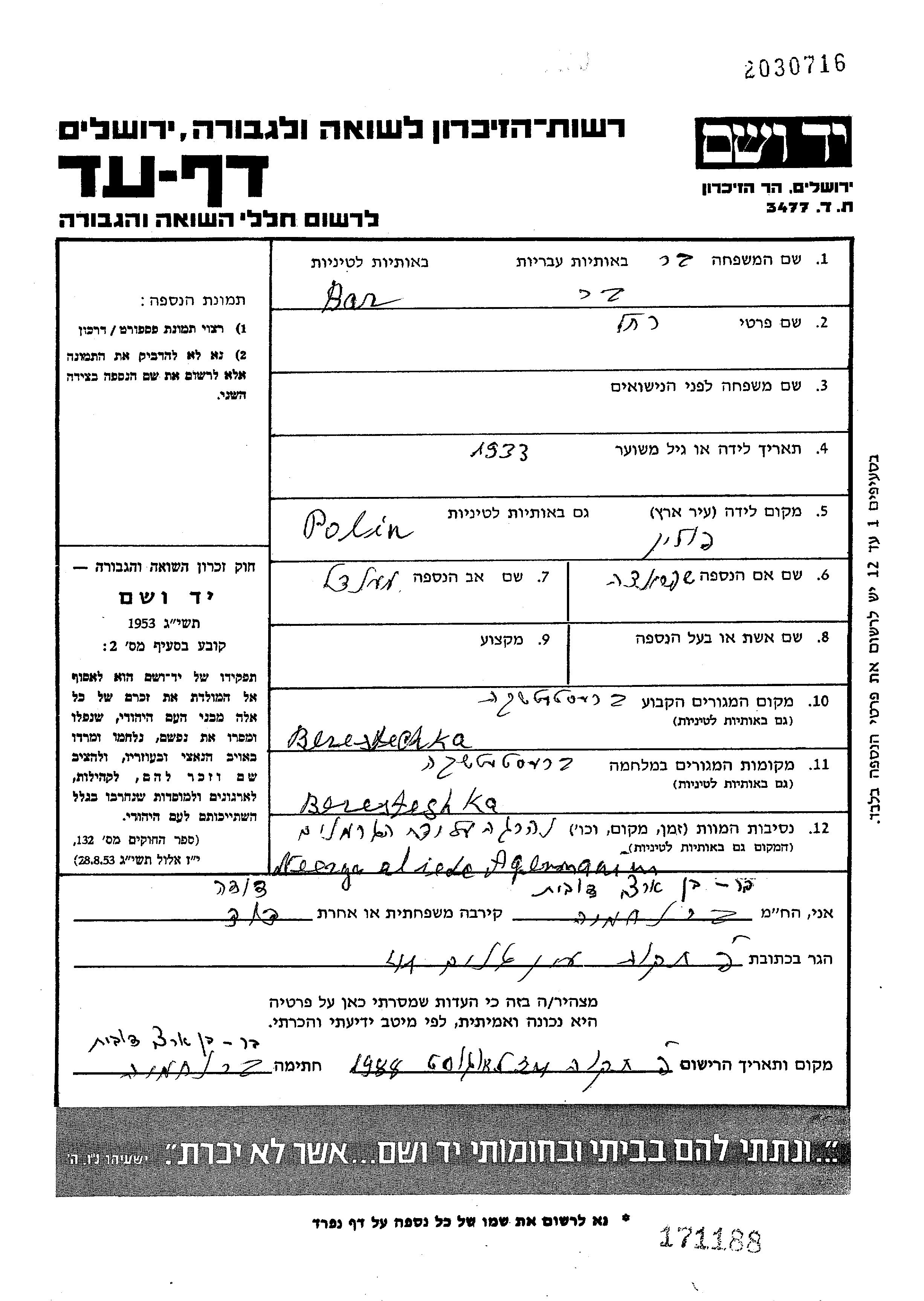 Yad Vashem - Pages of Testimony Names Memorial Collection
