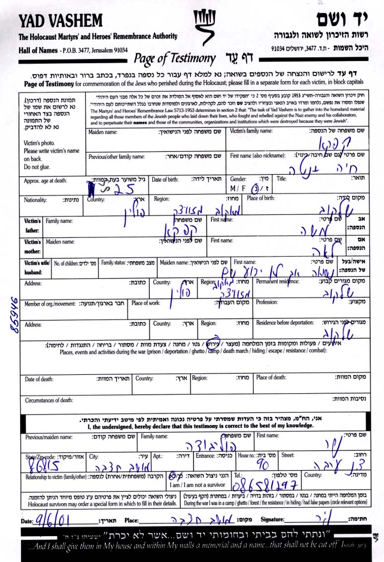 Yad Vashem - Pages of Testimony Names Memorial Collection