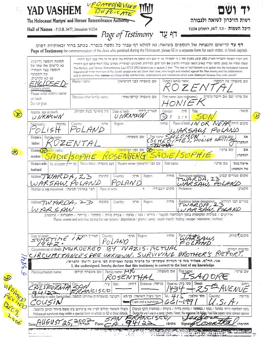 Honiek Rozental was born in Warszawa, Poland. Prior to WWII he lived in Warszawa, Poland.