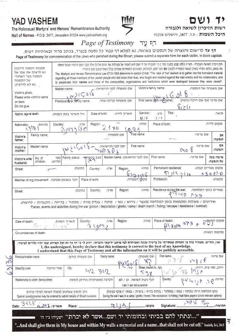 | Lustigman | Yoel | 1921 | Podhajce, Poland | Page of Testimony |