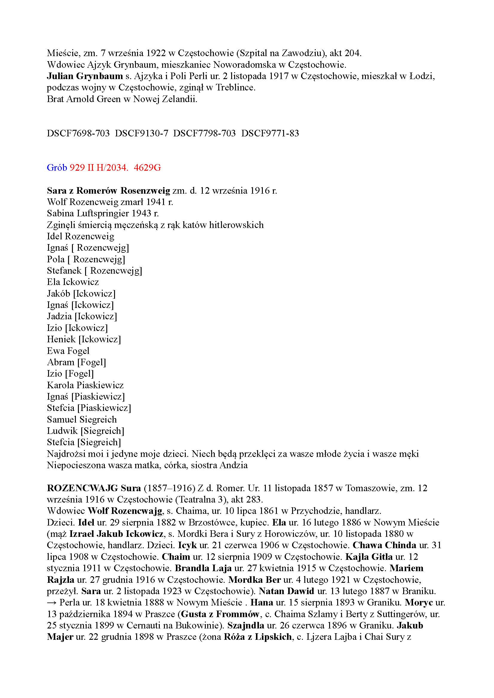 Rozencwajg Wolf 1861 Przychodzko, Poland List of Jewish residents