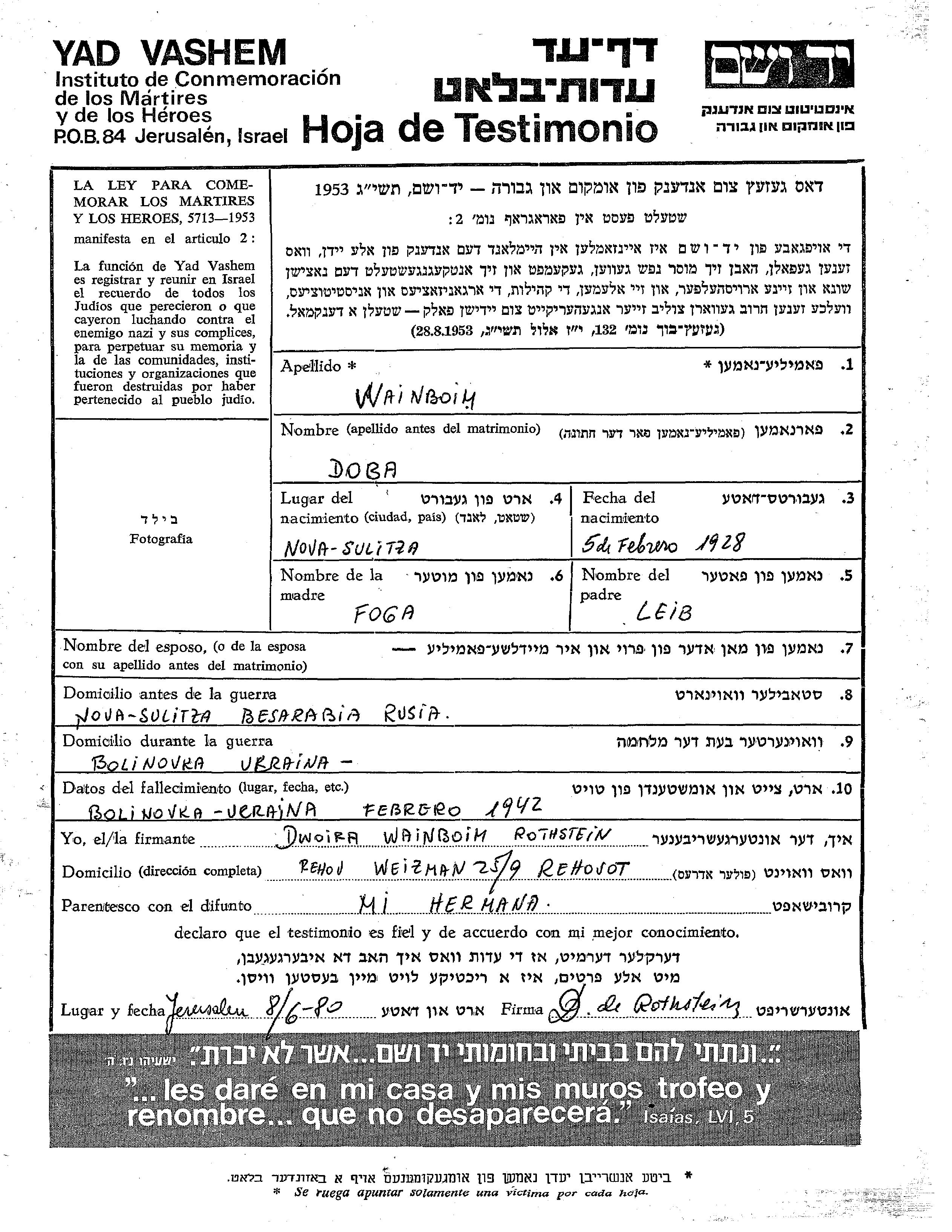 Doba was murdered in the Shoah.
