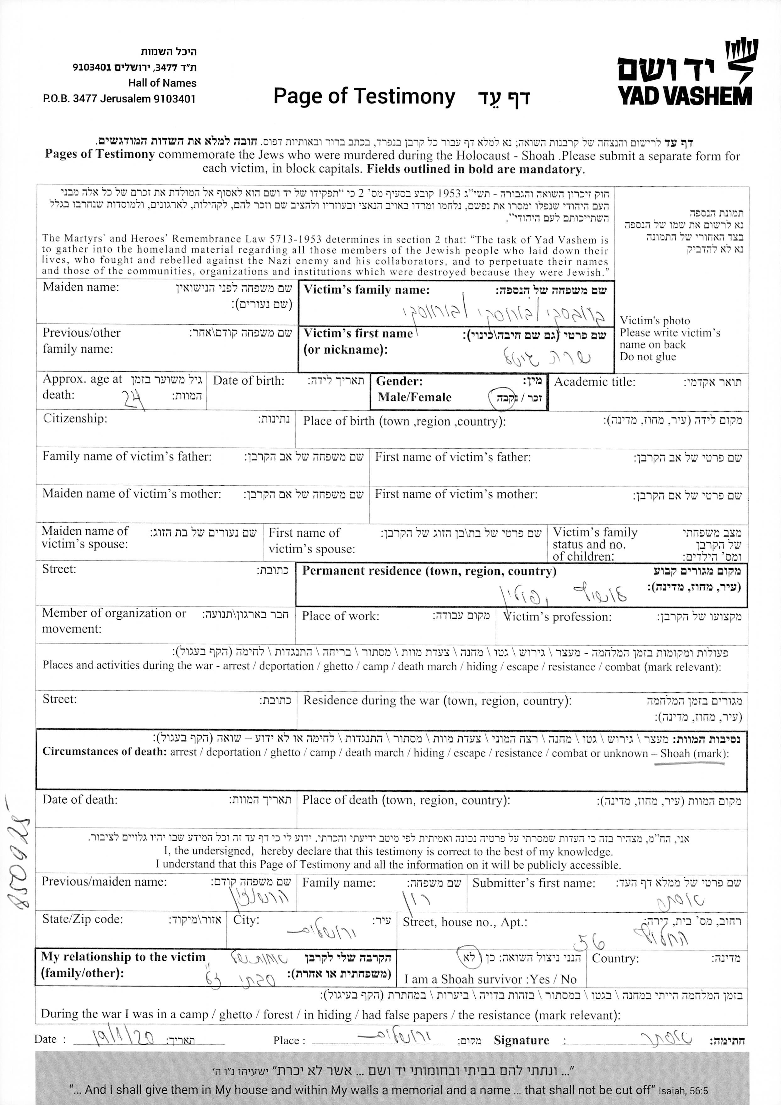 Yad Vashem - Pages of Testimony Names Memorial Collection