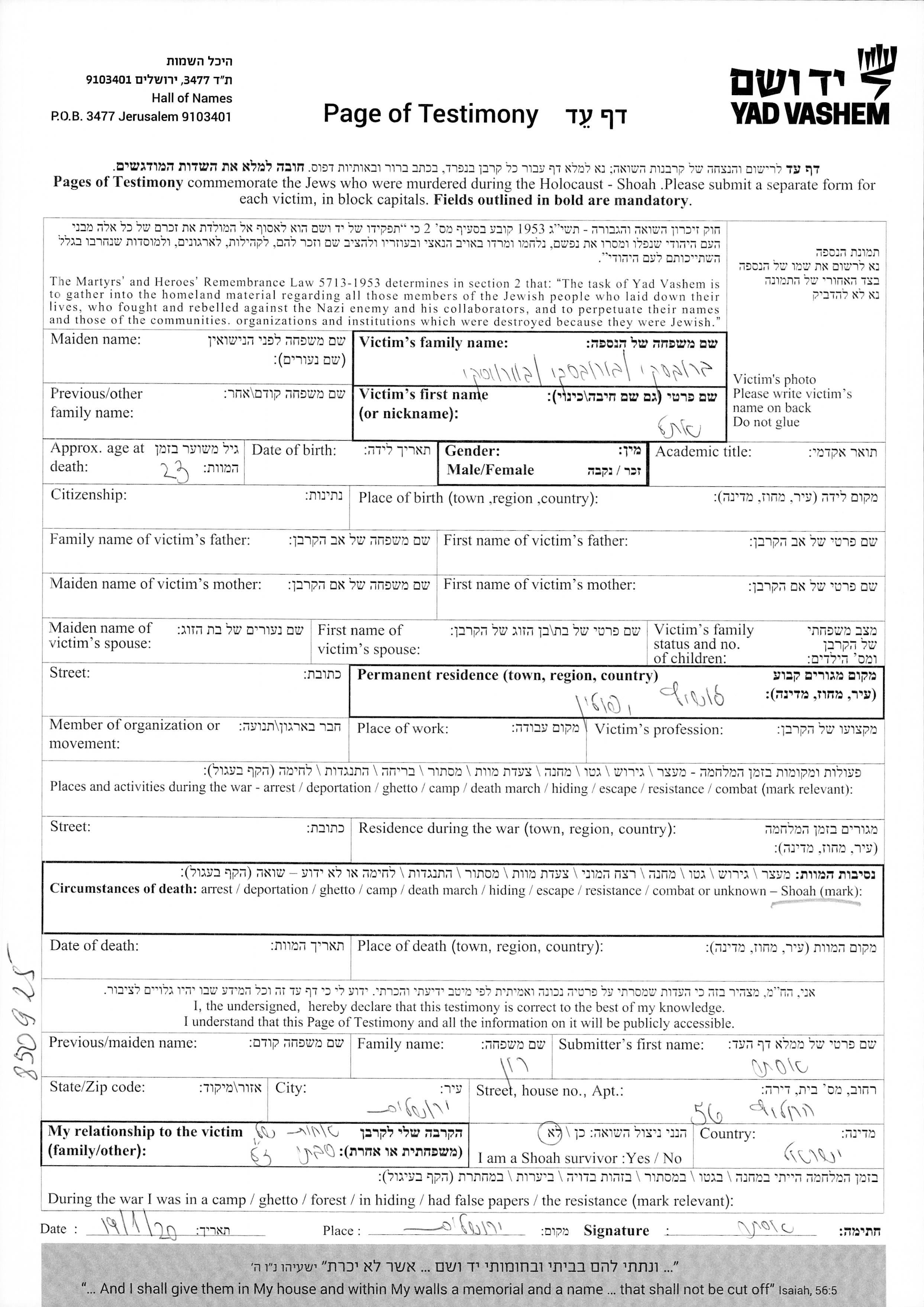 Yad Vashem - Pages of Testimony Names Memorial Collection