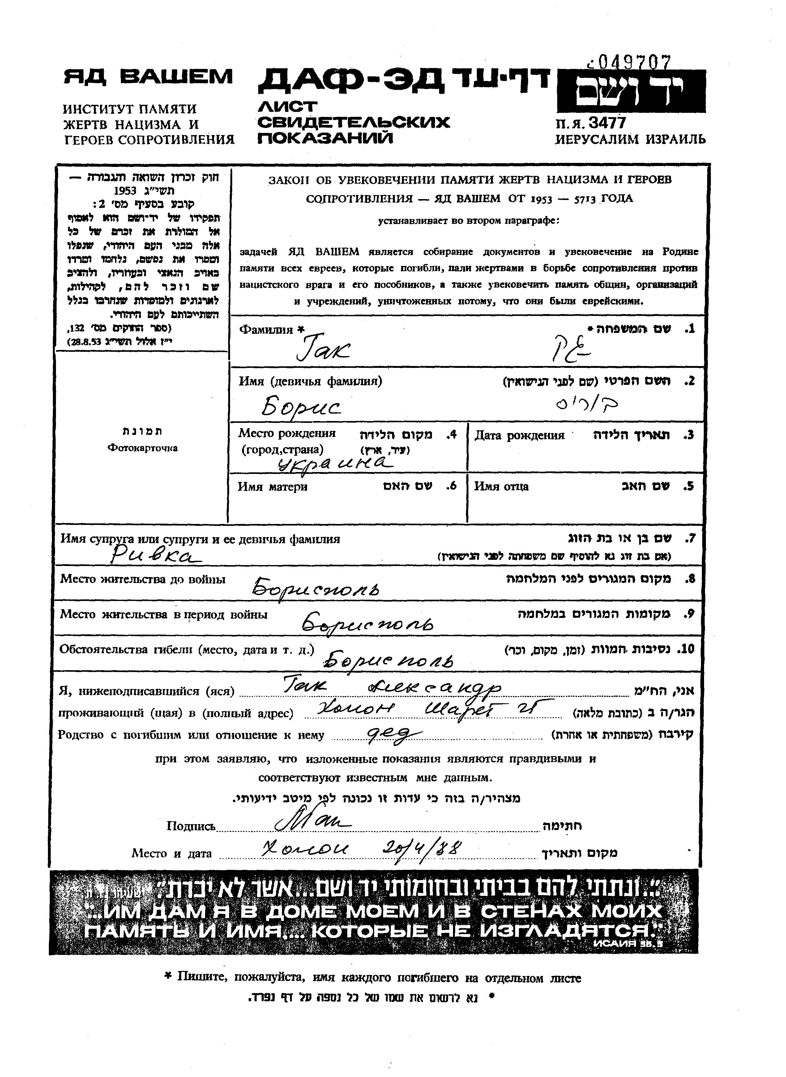 Gak Boris Borispol, Ukraine (USSR) Page of Testimony