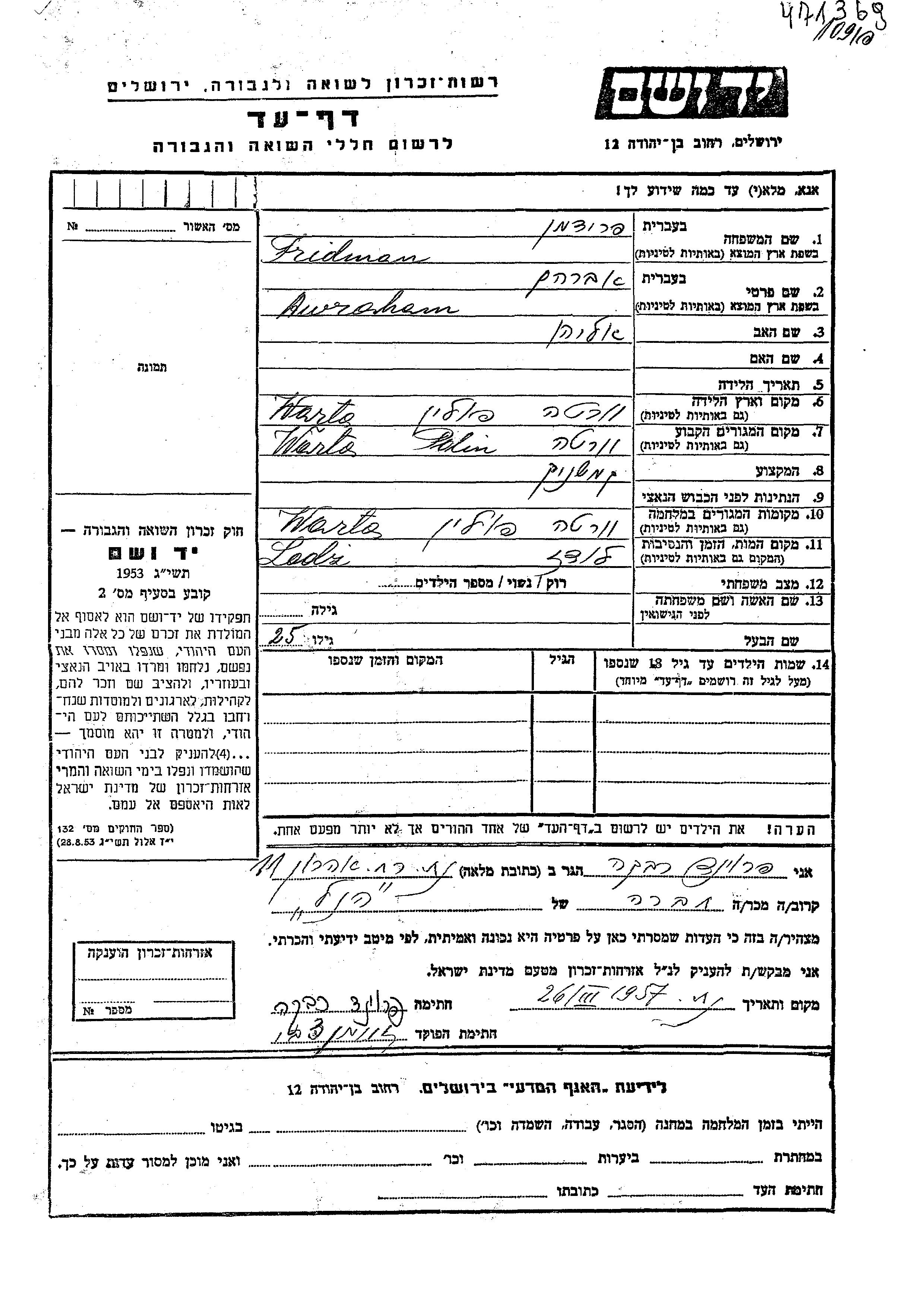 Yad Vashem - Pages of Testimony Names Memorial Collection
