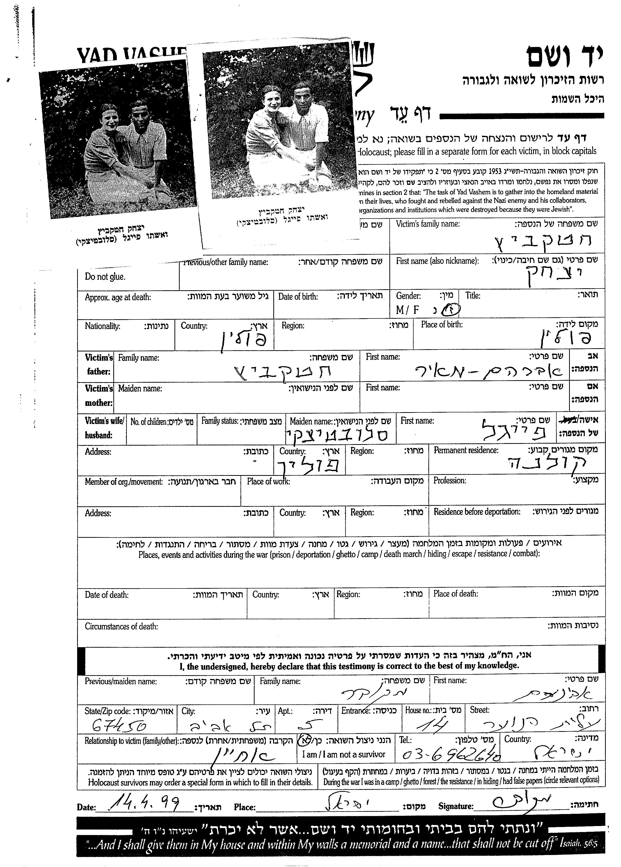 Yad Vashem - Pages of Testimony Names Memorial Collection