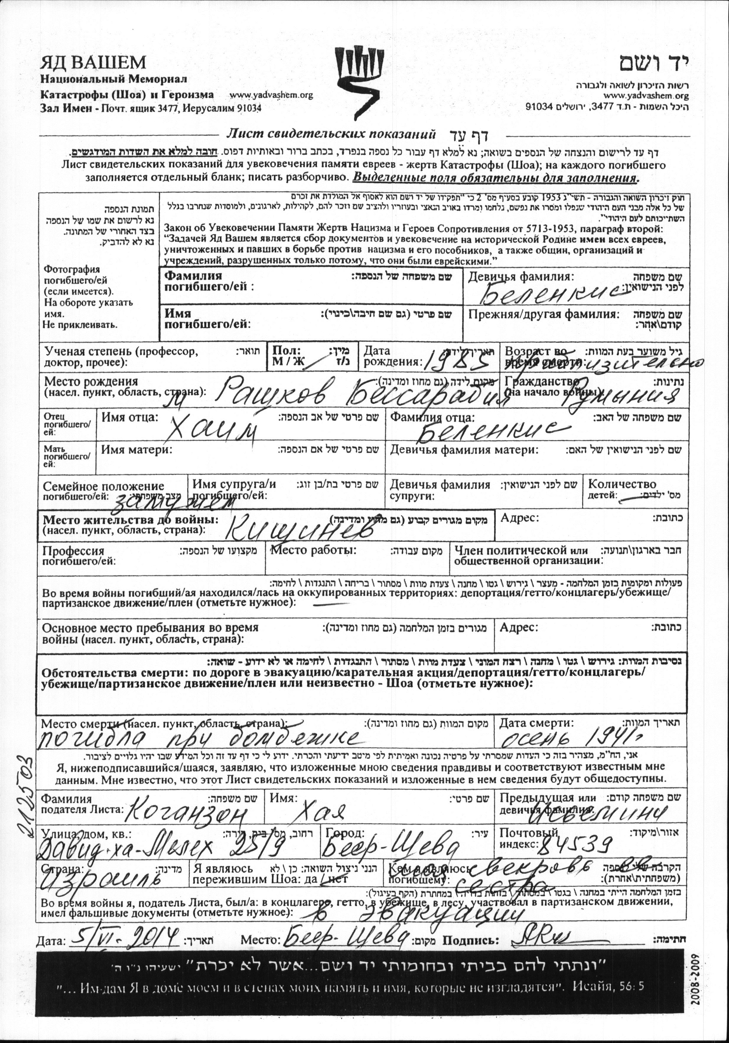 Yad Vashem - Pages of Testimony Names Memorial Collection