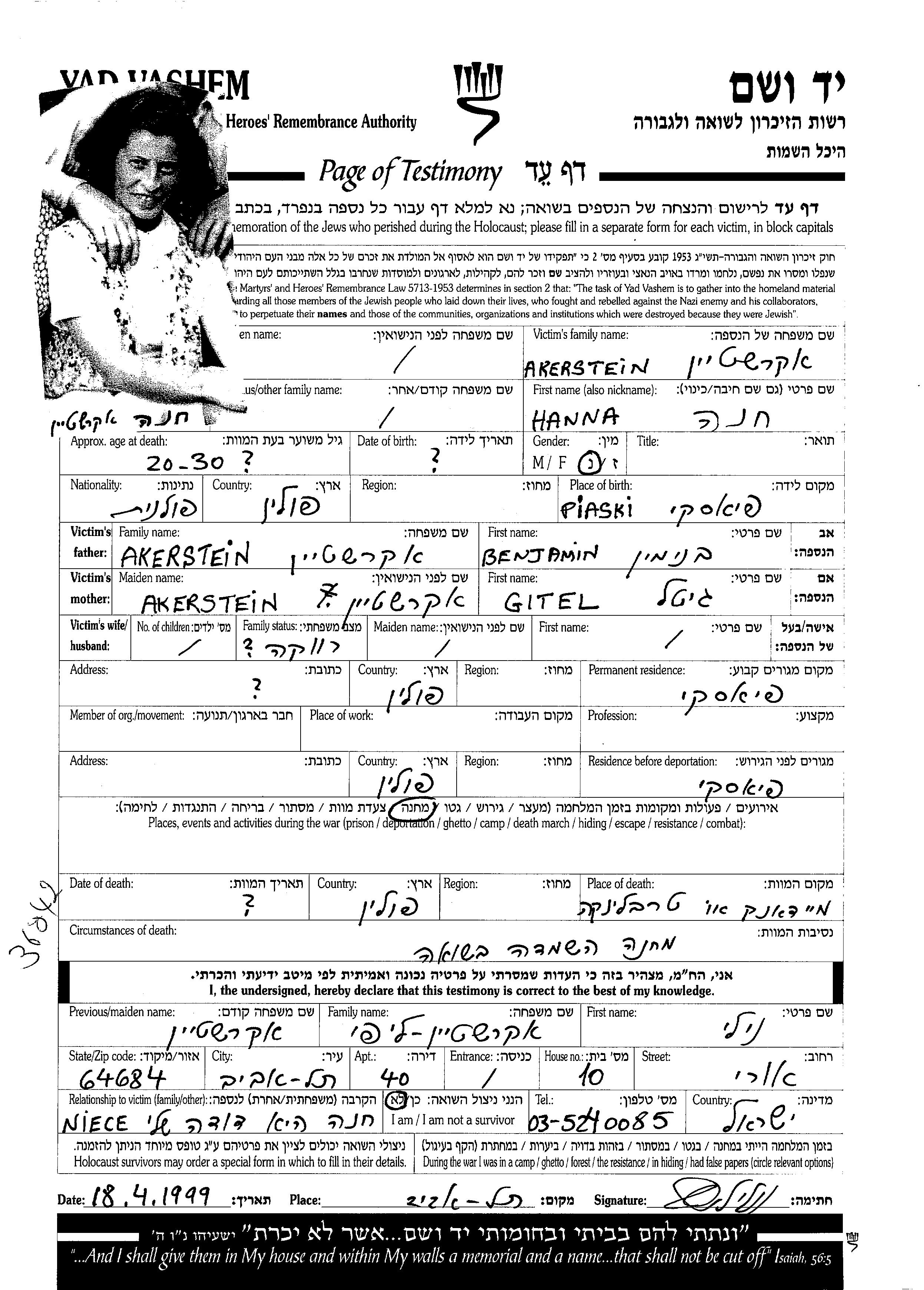 Yad Vashem - Pages of Testimony Names Memorial Collection