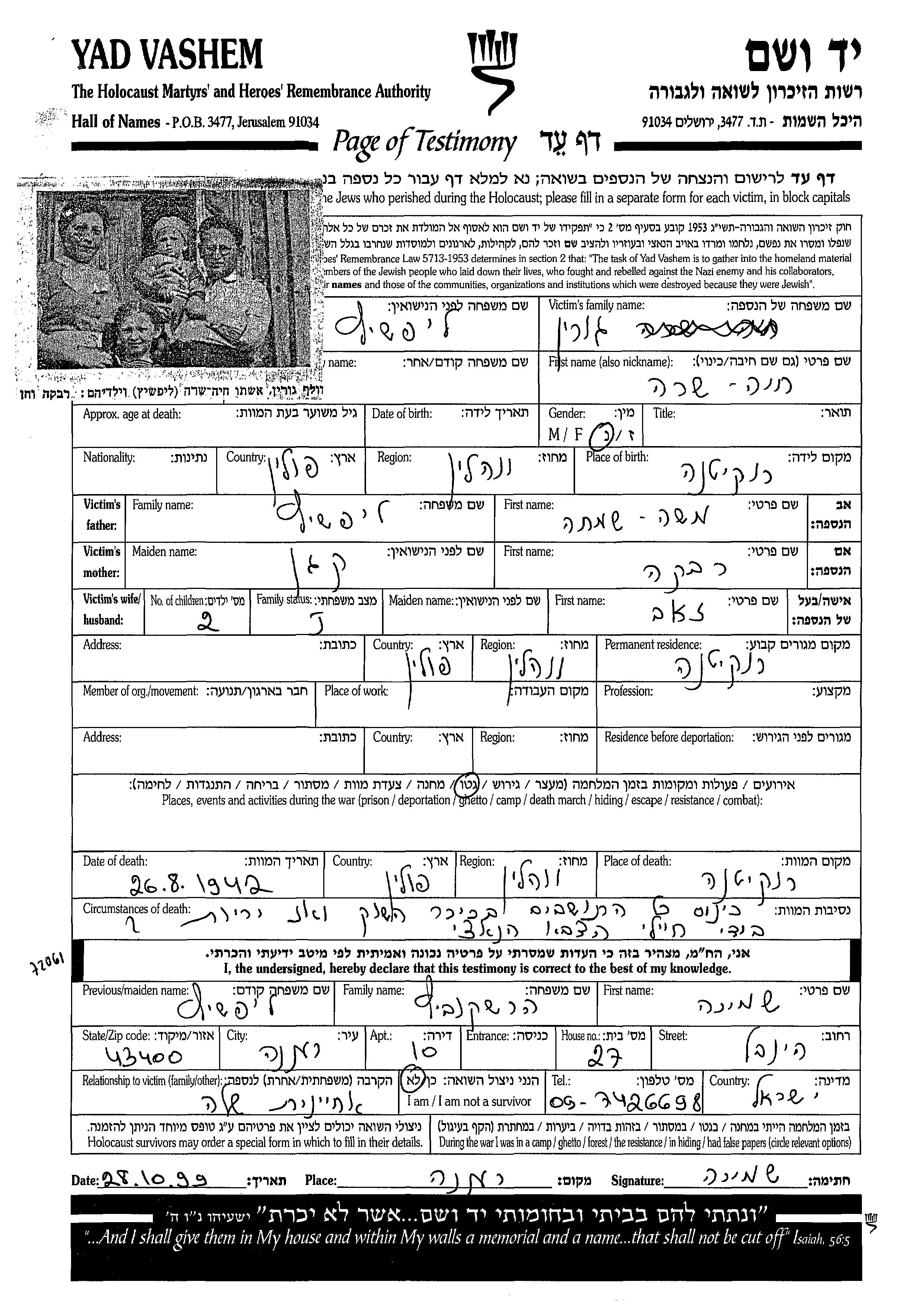 Yad Vashem - Pages of Testimony Names Memorial Collection