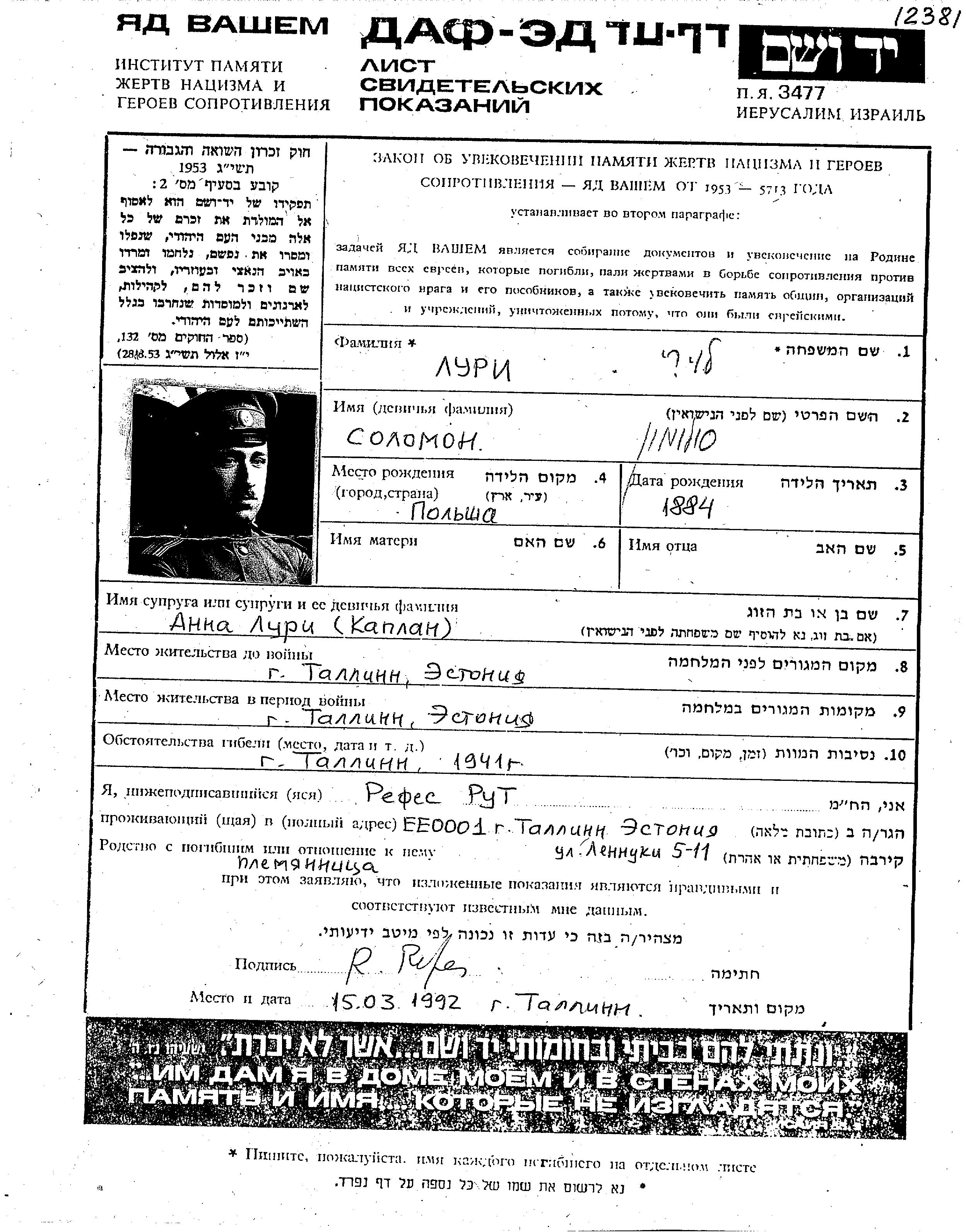 Search by last name of the submitter of the Page of Testimony, including diminutives or nicknames