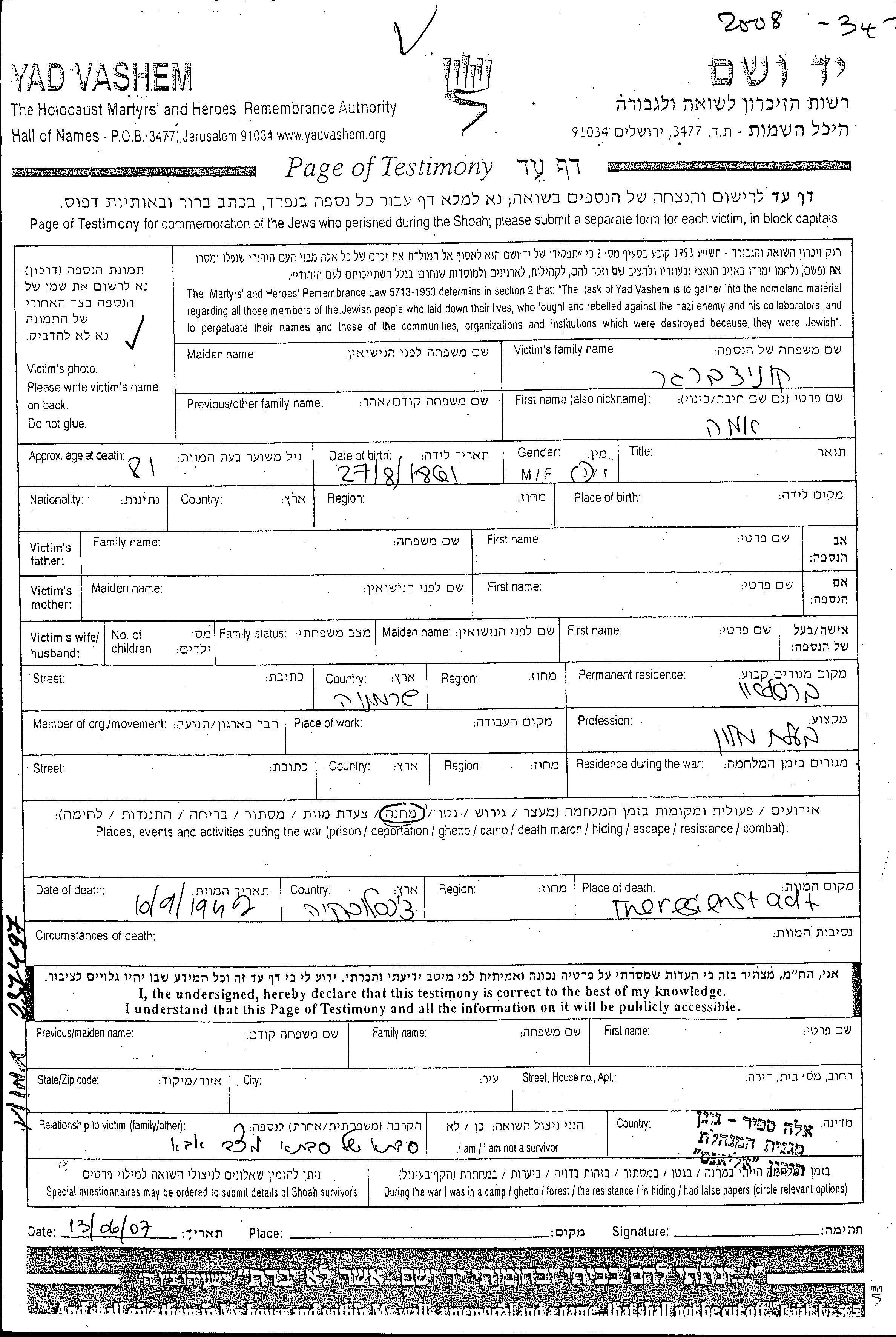 | Konitzberger | Ema | 1861 | Breslau, Germany | Page of Testimony |