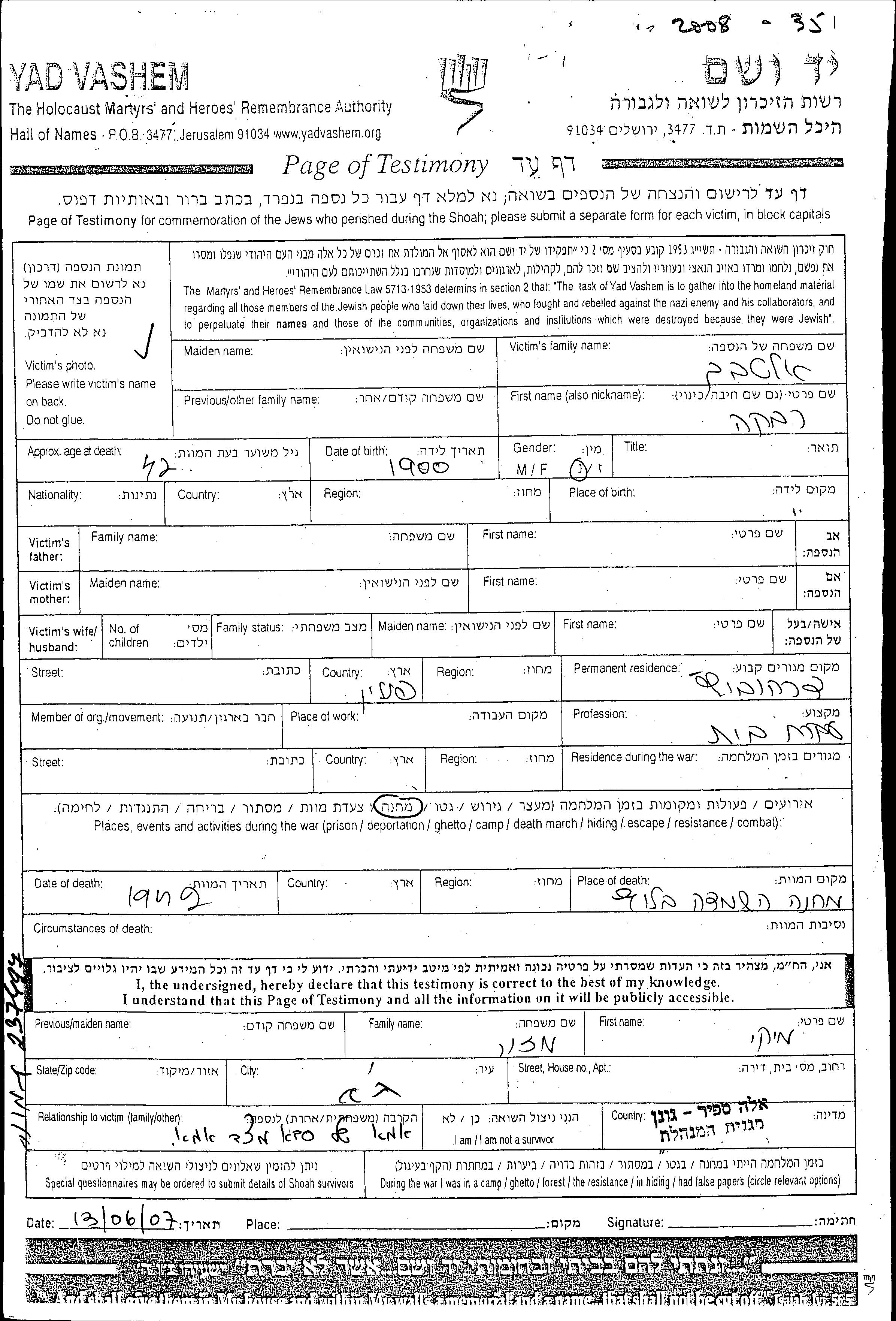 | Altbakh | Rivka | 1900 | Drohobycz, Poland | Page of Testimony |
